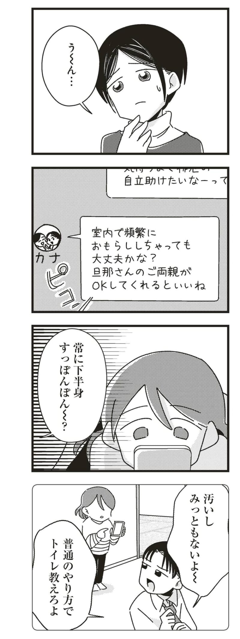 おむつ卒業の遅れに悩む彼女は、おむつを使わない「おむつ解放育児」に強い関心を示す。