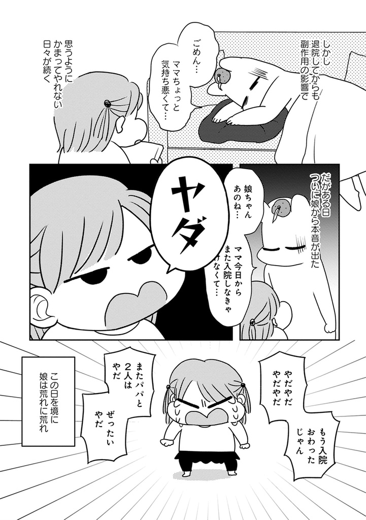 母の入院中、仕事を休み5歳の娘と向き合う夫…“家族の絆”の形とは【ママ5年目でがんなんて 手に入れた卵子と失った味覚】第7話「娘の限界と夫のサポート」by 松本ぽんかん