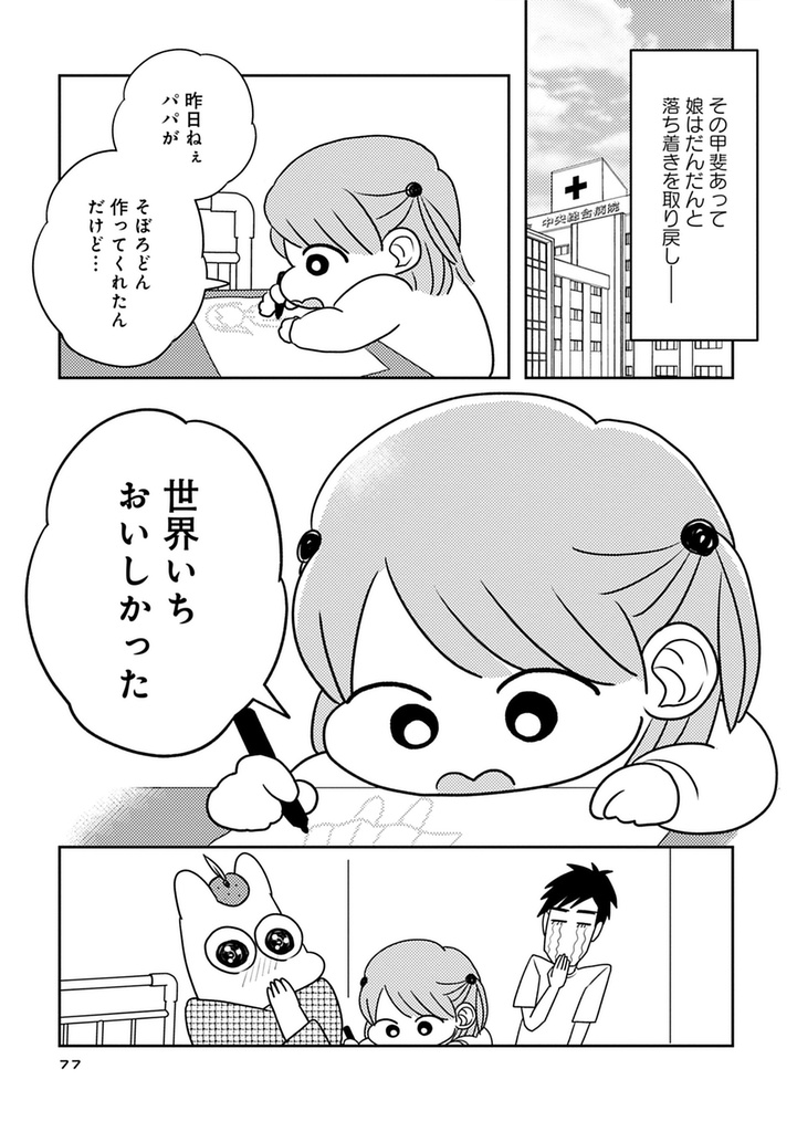 母の入院中、仕事を休み5歳の娘と向き合う夫…“家族の絆”の形とは【ママ5年目でがんなんて 手に入れた卵子と失った味覚】第7話「娘の限界と夫のサポート」by 松本ぽんかん