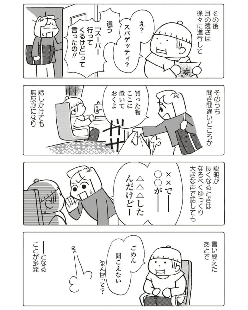 けれど次第に、高齢の母は話しかけても返事がなくなり、テレビの音量もどんどん上がっていった。