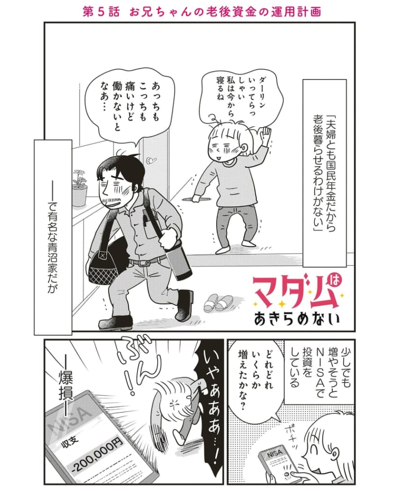 夫婦ともに国民年金。老後資金を増やすつもりが…“運用の落とし穴”に気づくまで「マダムはあきらめない」第5話【お兄ちゃんの老後資金の運用計画】 by 青沼貴子
