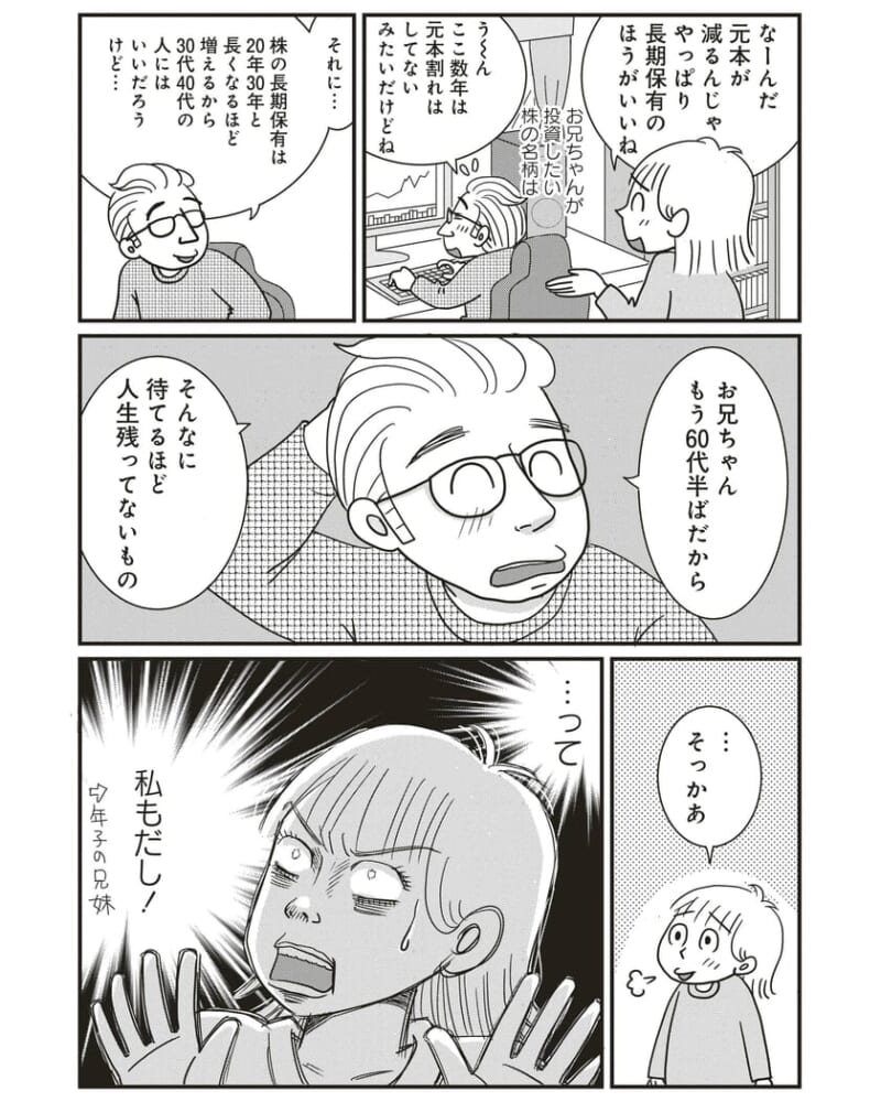<広告> 夫婦ともに国民年金。老後資金を増やすつもりが…“運用の落とし穴”に気づくまで「マダムはあきらめない」第5話【お兄ちゃんの老後資金の運用計画】 by 青沼貴子 ‹ 前の話 作家一覧 <広告> 青沼貴子 ‹12345› 2025/10/07 <広告> ‹12345› ★フォローして青沼貴子さんの最新記事をチェック! ‹ 前の話 作家一覧 本記事は個人的体験談などに基づいて作成されており、脚色なども加えられている場合もあり、必ずしも各読者の状況にあてはまるとは限りません。この記事の情報を用いて行動される場合、ご自身の責任と判断により対応いただけますようお願い致します。尚、記事に不適切な内容が含まれている場合はこちらからご連絡ください。 -------------------------------- <広告> 作者:青沼貴子 > 作者ページへ - ママ マダムはあきらめない, 青沼貴子 <広告> - ママ マダムはあきらめない, 青沼貴子 関連記事 関連記事: 「これからは家事も育児もする!」夫の言葉に家族の本音がぶつかる…妻が呟いた“ひと言”とは【マンフル夫 #28】 by 尾持トモ 関連記事: 自分を嫌っているママ友も利用する…母の強かな“仕掛け”が炸裂!その結果…【強子の楽しい(?)ママ友トラブル、年中編 #20】by 佐伯梅 関連記事: 「疲れちゃうから送迎変わって」育休明け1週間、妻の“都合のいいひと言”に、夫は…【未熟な夫婦の不協和音 #25】 by ぴん 関連記事: 「かわいそうに」の一言で限界に…オムツかぶれを責めた義母へ新米ママがぶつけた本音【オムツかぶれで義母と喧嘩勃発 #2】by ゴツ美 関連記事: 「勝手に庭に入らないで」夫経由で伝えた義母への不満。その後義母から一通の手紙が届き…【新居が地獄のお話⑤】 by くら 関連記事: 初めて出来たママ友から連絡がきた!ランチに誘われ喜んでいたけれど…【ママ友から宗教勧誘されてます②】 by 粥川結花 関連記事: 無料の仕事依頼を断ると逆ギレ!「お金を払えばいいんでしょ」と言い出した友達に伝えたことは…【描いてクレクレママ④】 by サル山 関連記事: とにかく家に入りたがる『あの子』 息子が「遊ばない」と断っても我が家に居座り続け…【うちの子は絶対に盗んでません!第24話】 by こっとん 関連記事: 9ヶ月の息子を車に乗せたまま、まさかのインロック!仇となった“車の鍵のしまい場所”は…【車の中に赤ちゃん閉じ込めプチ事件①】 by ムチコ