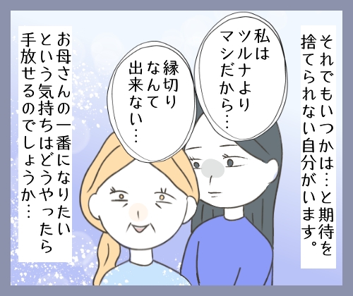ツルナちゃんは母親と物理的に距離を置きましたが、ミツルさんにとって程よい母親との距離感が見つかるといいですね…