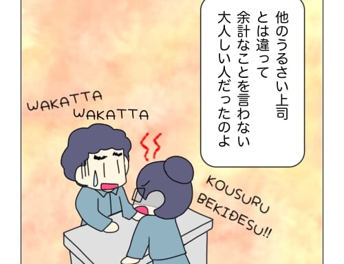 子どもの頃に受けた“躾”を語り始めた新人。1人で暗い時間を乗り切るために隠した工夫で、やがて涙を見せなくなった。だがそれが母の気持ちを逆なでして「反省していない」と責められてしまう。涙を求めるその姿勢に違和感を語る中、もう一人の新人が母に向かって「本当は娘さんに意地悪してたりして〜」と笑い混じりに放った。