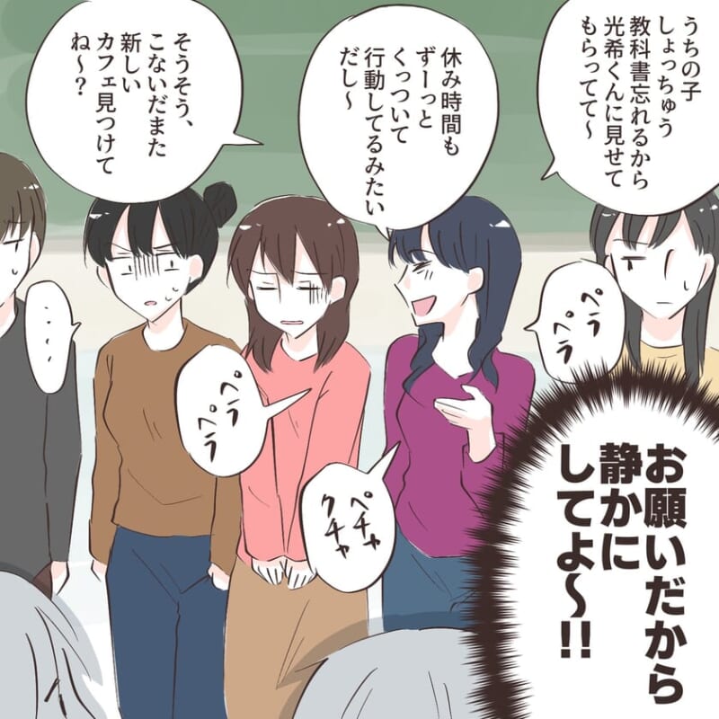 <広告> 参観中お喋りが止まらない母親に…子ども達が放った“ひと言”でスカッと展開!【我が家に依存する迷惑親子 #28】by みつけまま ‹ 前の話 一覧 <広告> みつけまま ‹12› 2025/10/03 <広告> ‹12› 【我が家に依存する迷惑親子】 ▶ 他の話も読む ★フォローしてみつけままさんの最新記事をチェック! ‹ 前の話 一覧 本記事は個人的体験談などに基づいて作成されており、脚色なども加えられている場合もあり、必ずしも各読者の状況にあてはまるとは限りません。この記事の情報を用いて行動される場合、ご自身の責任と判断により対応いただけますようお願い致します。尚、記事に不適切な内容が含まれている場合はこちらからご連絡ください。 -------------------------------- <広告> 作者:みつけまま > 作者ページへ > Instagramを見る みつけままさんの他のシリーズを読む 我が家に依存する迷惑親子 近所に住む「気になる子」 ご近所トラブル〜24時間あなたを監視しています〜 - トラブル みつけまま, 我が家に依存する迷惑親子 <広告> - トラブル みつけまま, 我が家に依存する迷惑親子 関連記事 関連記事: 乗り越えるものだろ ――妻を励ます俺にかけられた予想外の言葉【妻が突然家を出て行きました #22】by ずん 関連記事: パートしながら毎日2食を義母へ…食事を届け続ける“私の本音”【最高の親孝行⁉︎ #3】 by 新垣ライコ 関連記事: 「もう繰り返したくない」子どもをめぐる話し合いで交差する夫婦の気持ち…夫の本音は「うちの夫は子どもがほしくない」第8話:夫以外の男性③ by グラハム子 関連記事: 育休をとった旦那がストレス!育児非協力の旦那が毎日欠かさず行く場所は…【旦那が育休使ってスポーツジム行ってムキムキになりました 第二話】 by 家事しないと死ぬ旦那を描いてる人 関連記事: 息子の様子がおかしい!びっくりするような反応に戸惑い…【うちの子は絶対に盗んでません!第179話】by こっとん 関連記事: 《保育園のトラウマ記憶》お昼寝直前までおしゃべりしてたら保育園の先生が…【劣悪な保育園に転園した幼少期の話③】 by ぽよ母 関連記事: “あいつ”の後は絶対イヤだ!義実家同居中の義姉夫とトイレ争奪戦!【同居している義姉夫がやばかった話②】 by ぶりまる 関連記事: このタイミングでその言い方!?『あの子』の意図はもしかして…?【うちの子は絶対に盗んでません!第178話】by こっとん