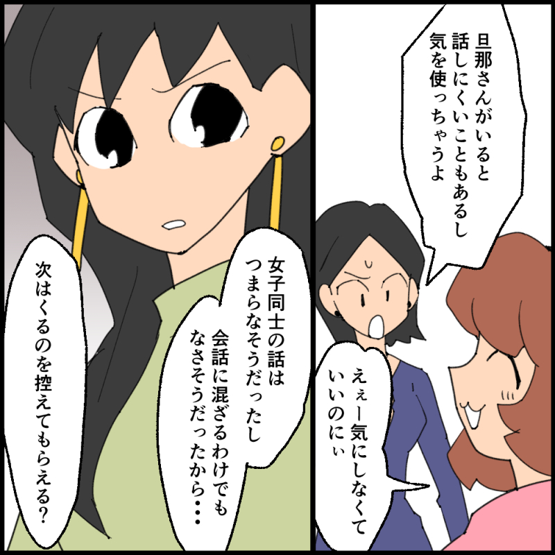 友人の夫は“女子会クラッシャー”! 空気を読まない発言連発に、笑顔の妻が衝撃対応【女子会に夫を連れてくる友人 #1】 by 音坂ミミコ