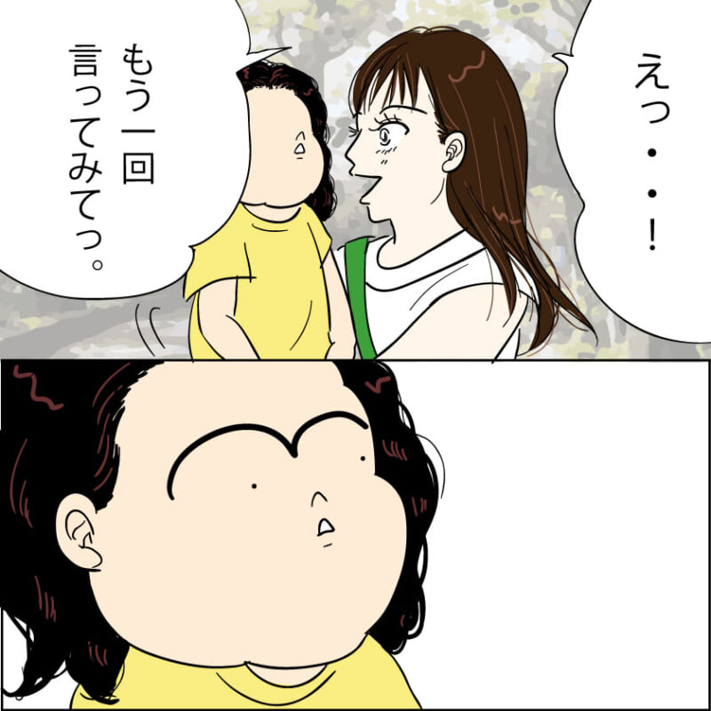 リカコを真似て「いい子、いい子」と初めて言葉を発した。