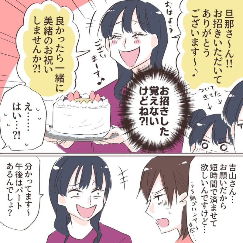 「無理です!」朝7時、“誕生日ケーキ”持参の押しかけママを断ると…玄関先で響いた“予想外の声”【我が家に依存する迷惑親子 #30】by みつけまま