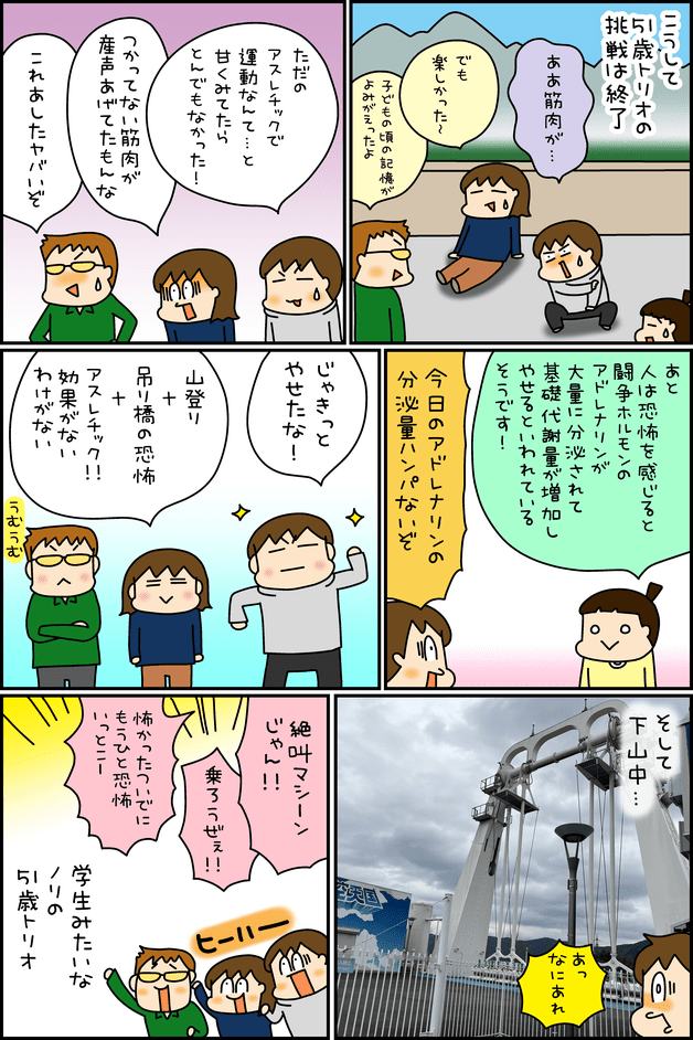 高さ30メートルの恐怖!50歳オジサンが挑んだ“空中アスレチック”で叫びが止まらない【松本ぷりっつのダンナ50歳、楽しく健康イケオジ部!】第7話:「51歳夫、アスレチックに挑む」 by 松本ぷりっつ ‹ 前の話 一覧 松本ぷりっつ ‹123456› 2025/10/28 <広告> ‹123456› 【松本ぷりっつのダンナ50歳、楽しく健康イケオジ部!】 ▶ 他の話も読む ★フォローして松本ぷりっつさんの最新記事をチェック! ‹ 前の話 一覧 本記事は個人的体験談などに基づいて作成されており、脚色なども加えられている場合もあり、必ずしも各読者の状況にあてはまるとは限りません。この記事の情報を用いて行動される場合、ご自身の責任と判断により対応いただけますようお願い致します。尚、記事に不適切な内容が含まれている場合はこちらからご連絡ください。 -------------------------------- <広告> 作者:松本ぷりっつ > 作者ページへ > Instagramを見る 松本ぷりっつさんの他のシリーズを読む うちはおっぺけ~3姉妹といっしょ 子育てバッチコイ! - ダイエット, 旦那 松本ぷりっつのダンナ50歳、楽しく健康イケオジ部! - ダイエット, 旦那 松本ぷりっつのダンナ50歳、楽しく健康イケオジ部! 関連記事 関連記事: 「おねがい、言わないで!」謝罪も反省も遅すぎた…迷惑をかけ続けたママ友に容赦ない結末【セレブママの知られざる一面 #52】 by しろみ 関連記事: 「事情を全部聞いた」会社に予想外の来訪者…隠していた前職での過去が語られる【ママ、辞めます。 #41】by 星田つまみ 関連記事: “ひとりを置いて”金持ち再婚 ――数年後、姉が病室で再会した意外な相手【大迷惑な姉と縁を切った話 #4】by みとみい 関連記事: 「スマホ見過ぎじゃない?」夫の言葉に妻が意外な反応…子どもが“パパにだけ”こっそり告げたひと言【スマホ依存ママの代償 #4】 by ままぽぽ 関連記事: 『夫から毎晩強制される!』同居する義両親の部屋に駆け込んだママ友。すると…【2度目の失敗⑮】 by 愛すべき宇宙人 関連記事: 「子どもを作れ」と言われ続けて我慢の限界!旦那に相談すると意外な返事が…【子なしハラスメントをされた話③】 by 小森うに 関連記事: 悪阻中でも栄養を取って欲しいと願う旦那の珍行動!私のために作ってくれた驚きのメニューは…【偏った知識に振り回された私のしくじり体験談②】 by まろ 関連記事: うまくいかなかった朝の妊活。朝4時に私は起きたのに旦那は…【私の不妊治療㉖】 by SAKURA 関連記事: 子供は欲しいと言いながら“しない”夫。不妊治療を始めるもタイミング療法も精子検査も拒否されて…~してくれない夫と不妊治療~【悪気がない&常識もない義両親⑥】 by すじえ