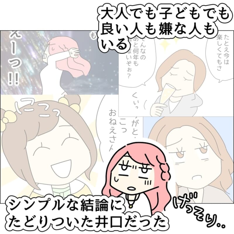 電車で子どもに足を踏まれた井口。子どもは謝ることなく少し気まずそうに目を逸らしますが、「子どもだから仕方ない…」とぐっと我慢します。でもせめて保護者から「すみません」のひとことがあればずいぶん気持ちが違いますよね。保護者は気づいているのでしょうか?