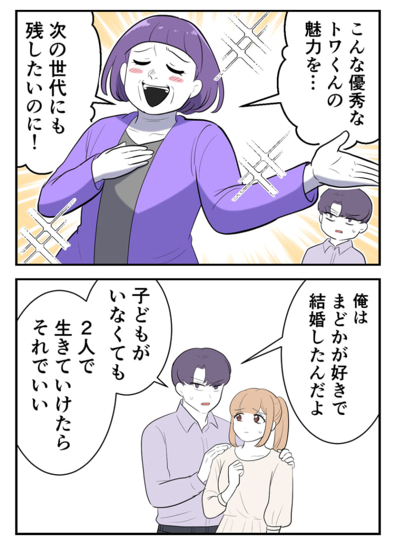 「結婚の次は、もちろん…」子を持たないと夫婦で決めたのに、義母からの圧が…【夫婦ふたりじゃダメですか? #2】 by 尾持トモ