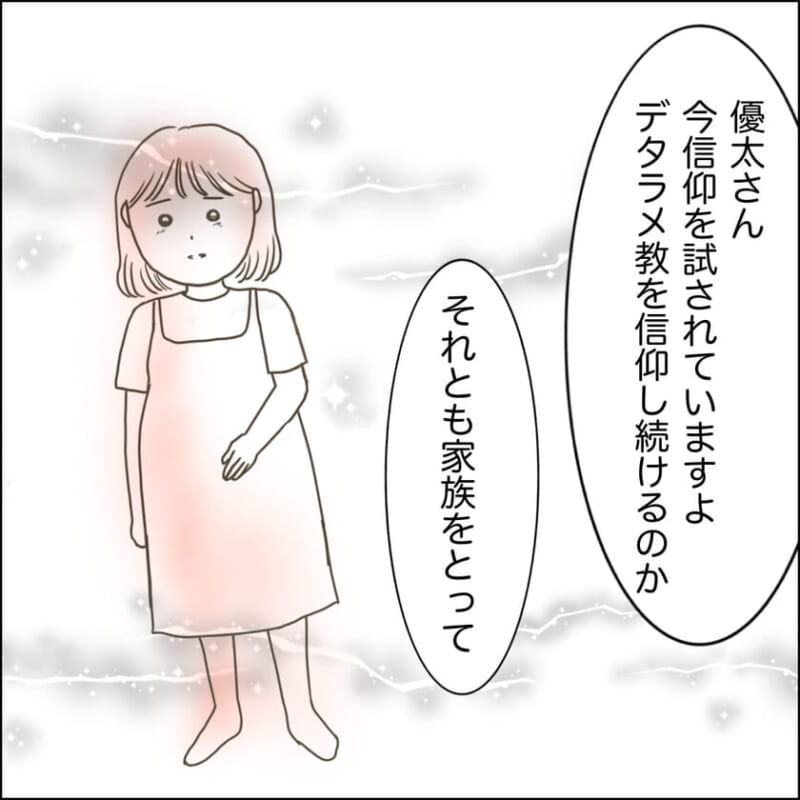 <広告> 「やめたら家族を守れない!」 夫を追い詰める“声”の正体【宗教2世と結婚しました #79】 by ぷっぷ ‹ 前の話 一覧 <広告> ぷっぷ ‹12› 2025/11/08 ; つづく。 「宗教2世と結婚しました。~優しいはずだった彼が私を壊していく~」をまとめて読もう! <広告> ‹12› 【宗教2世と結婚しました】 ▶ 他の話も読む ★フォローしてぷっぷさんの最新記事をチェック! ‹ 前の話 一覧 本記事は個人的体験談などに基づいて作成されており、脚色なども加えられている場合もあり、必ずしも各読者の状況にあてはまるとは限りません。この記事の情報を用いて行動される場合、ご自身の責任と判断により対応いただけますようお願い致します。尚、記事に不適切な内容が含まれている場合はこちらからご連絡ください。 -------------------------------- <広告> 作者:ぷっぷ > 作者ページへ > Instagramを見る ぷっぷさんの他のシリーズを読む 宗教2世と結婚しました 今から〇〇りにいこうか カリスマ園長が経営する保育園でまさかのトラブル - トラブル, 旦那 ぷっぷ, 宗教2世と結婚しました <広告> - トラブル, 旦那 ぷっぷ, 宗教2世と結婚しました 関連記事 関連記事: 「どの口が言ってんの?!」財布トラブルを追及され、開き直る母に保護者会は騒然【セレブママの知られざる一面 #55】 by しろみ 関連記事: 「この子の家で“何か”が起きている!」 幼稚園の先生が怪しんだ“サイン”とは【戦いごっこが招いた誤解 #3】 by かかじり 関連記事: 想像以上に大変で…!産後に買って後悔したアイテム【思えば産後1ヶ月が一番辛かった③】 by 渡部アキ 関連記事: 一生に一度の記念として作った赤ちゃん筆。義両親にもプレゼントした翌年、義父から2枚の年賀状が届き…【悪気がない&常識もない義両親③】 by すじえ 関連記事: 夫が1歳2ヶ月の息子の歯磨きをしていると…突然息子の泣き声が!【喉に歯ブラシが刺さった⁉ 1歳の息子が救急搬送された話①】 by ちゅん 関連記事: 夫の行動にイラッ!2人目の予定帝王切開直前、病室で夫がバッグから取り出したものは…【2人目出産入院中に地雷を踏みまくった夫の話①】 by むるいるい 関連記事: 自称自然派のママ友のせいでシャンプーをしなくなった娘。ママ友にやめてほしいと伝えると…【オーガニックにこだわる汚ママのお話④】 by しろみ