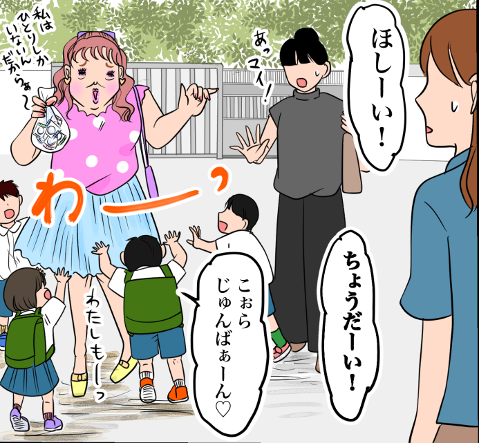 幼稚園のお迎え時間、毎日お菓子を配って子どもたちの人気を集める1人のママの姿に、周囲の保護者たちはあきれ返っていた…。
