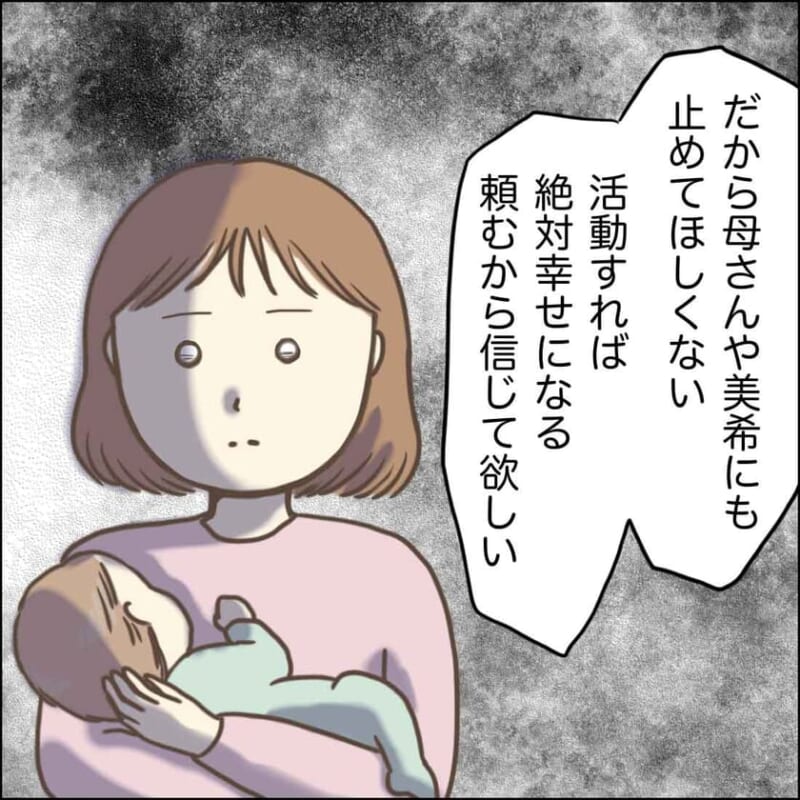 <広告> 「俺は活動をしなきゃいけない!」頑なな夫が“やめられない理由”【宗教2世と結婚しました #80】 by ぷっぷ ‹ 前の話 一覧 <広告> ぷっぷ ‹12› 2025/11/12 つづく。 「宗教2世と結婚しました。~優しいはずだった彼が私を壊していく~」をまとめて読もう! <広告> ‹12› 【宗教2世と結婚しました】 ▶ 他の話も読む ★フォローしてぷっぷさんの最新記事をチェック! ‹ 前の話 一覧 本記事は個人的体験談などに基づいて作成されており、脚色なども加えられている場合もあり、必ずしも各読者の状況にあてはまるとは限りません。この記事の情報を用いて行動される場合、ご自身の責任と判断により対応いただけますようお願い致します。尚、記事に不適切な内容が含まれている場合はこちらからご連絡ください。 -------------------------------- <広告> 作者:ぷっぷ > 作者ページへ > Instagramを見る ぷっぷさんの他のシリーズを読む 宗教2世と結婚しました 今から〇〇りにいこうか カリスマ園長が経営する保育園でまさかのトラブル - トラブル, 旦那 ぷっぷ, 宗教2世と結婚しました <広告> - トラブル, 旦那 ぷっぷ, 宗教2世と結婚しました 関連記事 関連記事: 喧嘩中の義母からの連絡…謝る嫁に義母がかけた言葉は!?【オムツかぶれで義母と喧嘩勃発 #4】by ゴツ美 関連記事: 言い返せないと思っていた同級生から“容赦ないひと言”!怒りを加速させる彼女だが…【いじめっ子JCの『こんなはずじゃなかった!』#3】by 佐伯梅 関連記事: 「妻がやるのが当然だろ」母の入院を丸投げし飲み会へ…夫の“呆れる言い分”とは【最高の親孝行⁉︎ #7】 by 新垣ライコ 関連記事: 「帰るぞ!」朝7時、“押しかけ親子”を迎えに来た夫の態度に絶句…!【我が家に依存する迷惑親子 #31】by みつけまま 関連記事: 児童手当の引き出しを拒否するモラハラ元夫。私に児童手当を渡したくない理由は…【変わっていく元夫③】 by 木村アキラ 関連記事: すみませんで済ませられない?保育園で起きたトラブルについて夫婦間ですれ違う意見。【保育園で噛まれた話④】 by 佐伯梅 関連記事: 出産直後から義両親は2人目督促!不妊治療に協力しない夫が気楽に言うことは…〜してくれない夫と不妊治療〜【悪気がない&常識もない義両親⑨】 by すじえ 関連記事: 秘密にしてた離婚話を人前で無配慮に話す園長。そのとき声を掛けてきたのは…【園長との確執⑧】 by ネギマヨ 関連記事: 『妻が療育に熱心』旦那さんの言葉に一同唖然!身勝手ママは“旦那の前では別の顔”!?【療育にいた!とんでもママ⑦】 by ふくふく