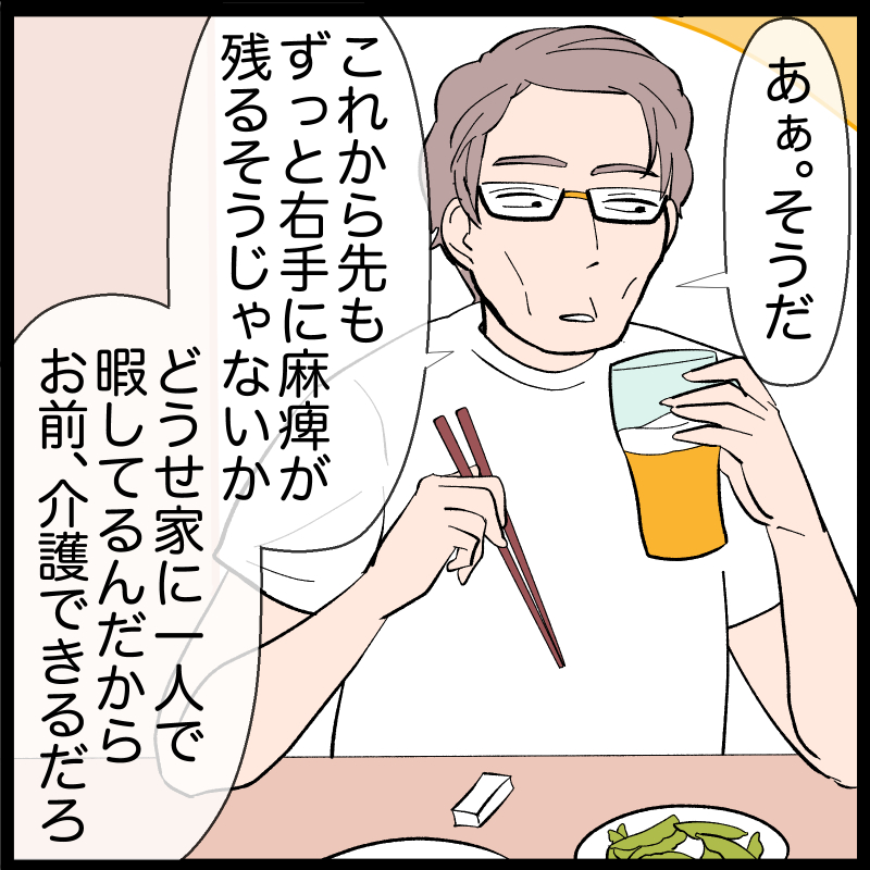 <広告> 「母さんの介護、できるだろ」夫が勝手に同居宣言。妻に放った“他人事な一言”とは【最高の親孝行⁉︎ #9】 by 新垣ライコ ‹ 前の話 一覧 <広告> 新垣ライコ ‹12› 2025/11/16 義母が倒れ救急搬送、入院することになってしまった! しかし夫は報告を聞いても心配どころか倒れた義母を責める捨て台詞を吐く始末 これからカスミの生活は大きく変わってします… <広告> ‹12› 【最高の親孝行⁉︎】 ▶ 他の話も読む ★フォローして新垣ライコさんの最新記事をチェック! ‹ 前の話 一覧 本記事は個人的体験談などに基づいて作成されており、脚色なども加えられている場合もあり、必ずしも各読者の状況にあてはまるとは限りません。この記事の情報を用いて行動される場合、ご自身の責任と判断により対応いただけますようお願い致します。尚、記事に不適切な内容が含まれている場合はこちらからご連絡ください。 -------------------------------- <広告> 作者:新垣ライコ > 作者ページへ > Instagramを見る 新垣ライコさんの他のシリーズを読む 最高の親孝行⁉︎ 私の赤ちゃん オカン系義母の干渉が止まらない!!! - じいじばあば, ママ, 介護 新垣ライコ, 最高の親孝行⁉︎ <広告> - じいじばあば, ママ, 介護 新垣ライコ, 最高の親孝行⁉︎ 関連記事 関連記事: 「彼がいる私、羨ましい?」ほほ笑む彼女が隠す“秘密”とは【モラハラ夫を捨てるまで㊾】by 佐伯梅 関連記事: 「相手の親が怒ってます」 学童の連絡に血の気が引いた…息子がケガさせた“相手”とは?【息子が加害者になりました 第17話】 by ゆる子 関連記事: 「うちでは引き取れない」息子にあっさり告げた姉。その言葉の“裏”にあるものとは【大迷惑な姉と縁を切った話 #6】by みとみい 関連記事: 幼稚園帰りに「夫を誘惑した」とセレブママがブチ切れ!騒然となった現場に現れた人とは!?【セレブボスママのターゲットは私⑪】by もっつん 関連記事: 「家族旅行なんてメリット無いw」不倫妻の暴言にキレた夫が、証拠写真を突き付ける!【「自称最強スペックママ」が、痛い目にあう話(15)】 by 山野しらす 関連記事: 3歳&1歳ワンオペ公園でママの意識が飛ぶ?!突然頭痛に襲われて…【ワンオペママが救急車に運ばれて詰みかけた話 #1】 by おぐらあんこ 関連記事: 兄嫁に話しかけたら母から罵声?!人を無神経と言う母が口にすることは…【兄妹格差 第36話】by こっとん 関連記事: 夫婦喧嘩なんて言わせない!夫によるDVの切実な状況を警察に伝えると…【モラハラ離婚⑮】 by あん子