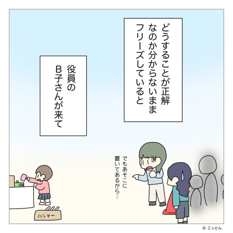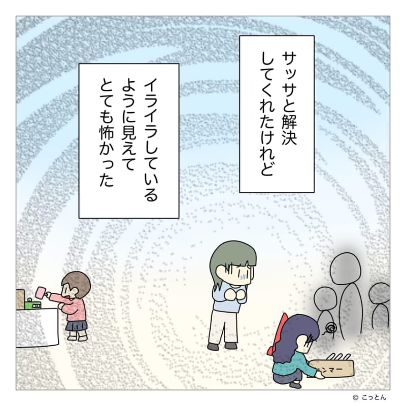 B子の第一印象は「怖い人」だった ――。 今では自然に会話ができるサレ美だが、出会った頃の距離感は今では考えられないほどだった。以前、幼稚園の行事の日、担当していたゲームに思いがけない大行列ができてしまった。サレ美はこの時、頭の中にはかつて母から言われた“ある言葉”がよみがえり、動くことが出来ずにいた…