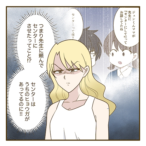 ヒョウガくんは一番前の“端”、ジュンくんは“真ん中”。その違いをジュンママがはっきり示した。納得できないヒョウガママは先生へ配置変更を相談することに。ところが後に、別の保護者による“あるお願い”があったと知り ──。
