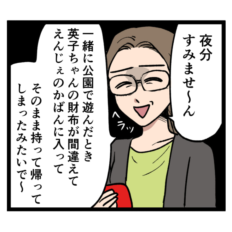 貼り付けたような笑顔で、英子ちゃんの家に財布を返しに行くみどり。