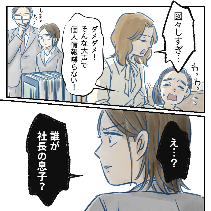 <広告> 「どうして私のプライベートに踏み入るの!?」居場所や前職が周囲にバレた…真相を知った彼女は…【ママ、辞めます。 #43】by 星田つまみ ‹ 前の話 一覧 <広告> 星田つまみ ‹12› 2025/11/27 <広告> 【ママ、辞めます。】 \無料で一気にまとめ読み!/ 電子書籍はこちらから! ▶https://amzn.to/3LYAImM ‹12› 【ママ、辞めます。】 ▶ 他の話も読む ★フォローして星田つまみさんの最新記事をチェック! ‹ 前の話 一覧 本記事は個人的体験談などに基づいて作成されており、脚色なども加えられている場合もあり、必ずしも各読者の状況にあてはまるとは限りません。この記事の情報を用いて行動される場合、ご自身の責任と判断により対応いただけますようお願い致します。尚、記事に不適切な内容が含まれている場合はこちらからご連絡ください。 -------------------------------- <広告> 作者:星田つまみ > 作者ページへ > Instagramを見る 星田つまみさんの他のシリーズを読む お昼寝難民と謎のおじさん 子連れ旅行×居眠り運転 我が子が起こした物損トラブル - ママ ママ、辞めます。, 星田つまみ <広告> - ママ ママ、辞めます。, 星田つまみ 関連記事 関連記事: 「ソレ、信用したらダメなやつ…」ママ友おすすめ育成カード。喜ぶ妻の横で夫が青ざめた2つの理由【私は立派に育てたい #19】by シオリ 関連記事: 持ち物が荒らされた昼休み…彼女が教室全員に向けて放った一言とは?【いじめっ子JCの『こんなはずじゃなかった!』#5】by 佐伯梅 関連記事: 家族のためと言った夫が…?突然語った“驚きの真意”に妻は息をのむ【宗教2世と結婚しました #82】 by ぷっぷ 関連記事: 「何食べたい?」に空気を読まない回答をする次男!1人で食べろと伝えると…?!【反面教師で育児やってますん。】第1話「親は子の背中を見て育つ?」-9 by チャー 関連記事: 歪んだ執着…ストーカー化したモラ夫!妻は、ある行動をとる!【妊娠したら夫が豹変しました㉖】by 尾持トモ 関連記事: 誰もいない教室で悪巧み?!母親をバカにされた小学生が怒りを募らせ…【親には言えない 第66話】by こっとん 関連記事: 「子供がいないとわからないよね」って嫌味!?なんかトゲを感じるの!【独身と既婚どっちが幸せ?第95話】by ゆりゆ 関連記事: 集合時間に現れないタカリママ!自宅に連絡すると言われたことは…【非常識なタカリママに目をつけられたお話⑲】 by しろみ