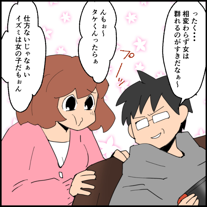 しかし友人の一人イズミは度々連絡なしに自分の夫を女子会に連れてきます…。