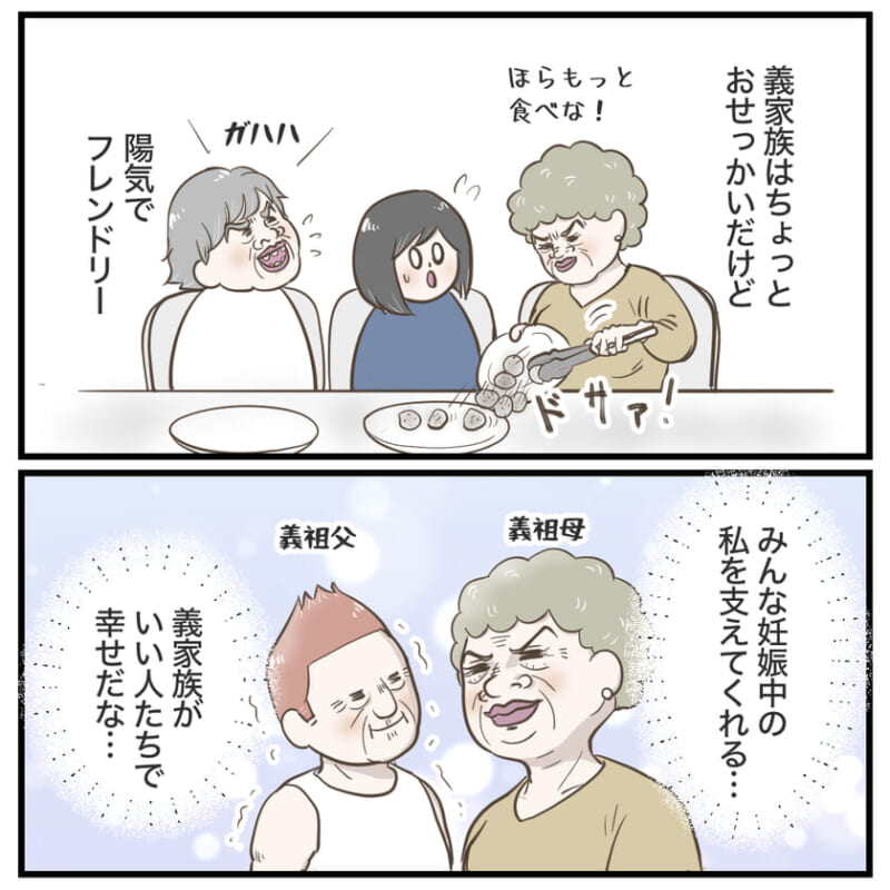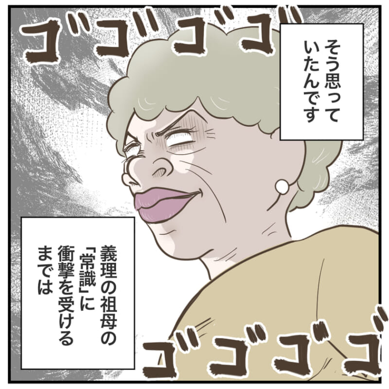 第二子妊娠を機に義家族の家の近くへ引っ越し、義祖母の85歳を祝うパーティーに参加した主人公。和やかな時間を想像していたものの、自分の感覚とは少し違う“義家族の常識”を目の当たりにすることに ――。
