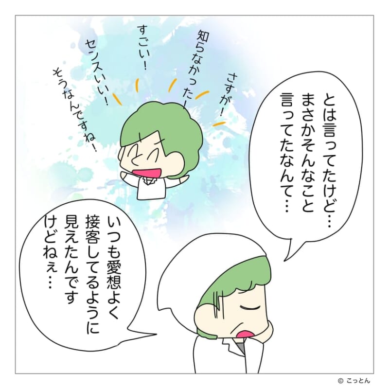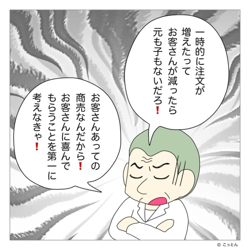 店長たちを呼んだ子ども連れの客の前で、強気だった店員は口調を変えた。言い切っていた説明は曖昧になり、視線を泳がせながら言葉を濁す。事情を聞いた店長たちは謝罪に回り、店員に状況を確認し始める。