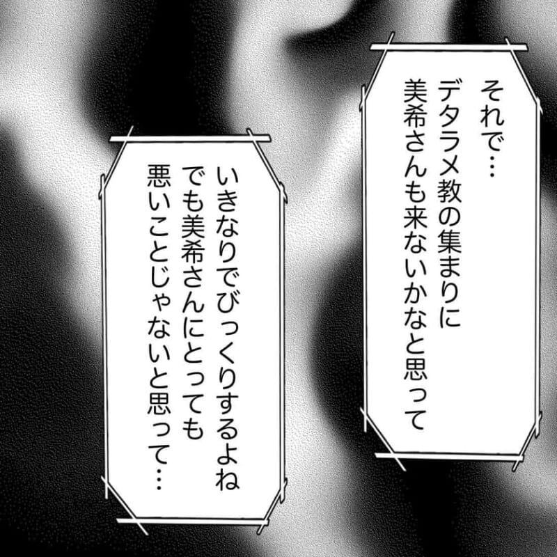 <広告> 「まさか、この人も夫と同じ…?」元同僚の思わぬ告白。誘われた妻の返答は【宗教2世と結婚しました #86】 by ぷっぷ ‹ 前の話 一覧 <広告> ぷっぷ ‹12› 2026/01/09 つづく。 <広告> 「宗教2世と結婚しました。」 \電子書籍でまとめ読み/ 作品はこちら👉https://amzn.to/42YJg2y ‹12› 【宗教2世と結婚しました】 ▶ 他の話も読む ★フォローしてぷっぷさんの最新記事をチェック! ‹ 前の話 一覧 本記事は個人的体験談などに基づいて作成されており、脚色なども加えられている場合もあり、必ずしも各読者の状況にあてはまるとは限りません。この記事の情報を用いて行動される場合、ご自身の責任と判断により対応いただけますようお願い致します。尚、記事に不適切な内容が含まれている場合はこちらからご連絡ください。 -------------------------------- <広告> 作者:ぷっぷ > 作者ページへ > Instagramを見る ぷっぷさんの他のシリーズを読む 宗教2世と結婚しました 今から〇〇りにいこうか カリスマ園長が経営する保育園でまさかのトラブル - 旦那 ぷっぷ, 宗教2世と結婚しました <広告> 関連記事 関連記事: 「ママはスーパー行ってきて」夫と娘が笑いながら言った“その意味”は…【“育児の敵”はそばに居る #20】 by しろみ 関連記事: 小1授業参観で「お腹に1発」したあの子。8か月の赤ちゃんに近づいて…?!【初めての授業参観での衝撃事件 #6】 by Ai 関連記事: 妊娠が判明した時のそれぞれの反応。小心な夫と肝の座った妻 by 重野なおき 関連記事: 自分勝手な旦那が言い放った耳を疑うほどの言葉【不倫ナルシストモラ夫は自分だけが好き⑧】 by カコマツ 関連記事: ようやく気付いた、産後の自分の変化【産後クライシスを乗り越えよう⑦】 by ちくまサラ 関連記事: お隣さんの夫婦事情「妻は、もうこの家には戻って来ないと思います」と言われて…【ママ友がこわい⑦】 by あん子 関連記事: 日本の新居に移り半年…今さら妻が気が付いたこと「ド天然ミャンマー人妻との破天荒ニッポン生活」第2話⑨ by 子原こう&林茂臣