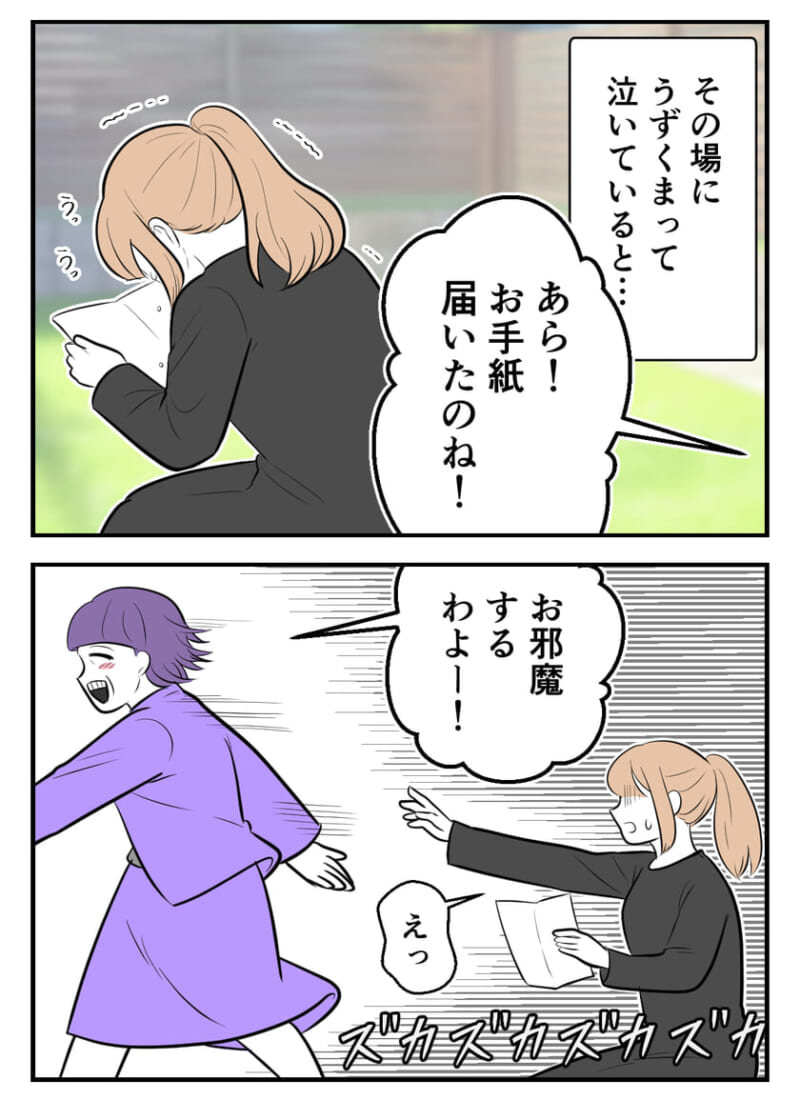 <広告> 「あの子に盗られちゃうかもよ」義母がニヤリ…その女って、あの時の?【夫婦ふたりじゃダメですか? #21】 by 尾持トモ ‹ 前の話 一覧 <広告> 尾持トモ ‹12› 2026/01/08 愛犬を亡くしたばかりの息子夫婦。 そんな中、義母は他人の助言を信じ込み、「これもあの子のため」と孫を望む手紙を送ってきた。 ――夫婦の我慢はすでに限界だった。 ▼今までのお話はコチラ▼ 【夫婦ふたりじゃダメですか?】 <広告> ‹12› 【夫婦ふたりじゃダメですか?】 ▶ 他の話も読む ★フォローして尾持トモさんの最新記事をチェック! ‹ 前の話 一覧 本記事は個人的体験談などに基づいて作成されており、脚色なども加えられている場合もあり、必ずしも各読者の状況にあてはまるとは限りません。この記事の情報を用いて行動される場合、ご自身の責任と判断により対応いただけますようお願い致します。尚、記事に不適切な内容が含まれている場合はこちらからご連絡ください。 -------------------------------- <広告> 作者:尾持トモ > 作者ページへ > Instagramを見る 尾持トモさんの他のシリーズを読む マンフル夫 妊娠したら夫が豹変しました 家族より友達を優先した夫の末路 - トラブル, 不妊治療, 妊娠, 怖い, 旦那, 浮気, 結婚 夫婦ふたりじゃダメですか?, 尾持トモ, 義実家, 義母 <広告> 関連記事 関連記事: 妻が出て行く男の共通点とは…『産後が辛い?母親なら、やって当たり前』【妻が突然家を出て行きました #36】 by ずん 関連記事: 保育園送迎は絶対イヤ、家事はやると言う妻だけど…それ、本気で言ってる?【未熟な夫婦の不協和音 #28】 by ぴん 関連記事: 女子会を壊していた“同行夫” 他の夫が現れた瞬間…急に黙ったのはなぜ?【女子会に夫を連れてくる友人 #7】 by 音坂ミミコ 関連記事: 「それが当然だろ?」毎日家事をこなす妻に、夫の態度は当たり前…?【最高の親孝行⁉︎ #17】 by 新垣ライコ 関連記事: ついに別居へ。夫に気付かれず無事に家を出たと思ったのに…別居先に着いた途端?!【モラハラ離婚⑰】 by あん子 関連記事: 義妹に特大ブーメラン!したたかな義妹が言葉を失った予想外の展開【なぜかお金を出さない義妹⑫】 by まるちゃん 関連記事: もし自分の夫が不倫していたら…絶対に言ってほしくない言葉「育休中に夫が不倫してました133」by ももえ 関連記事: 夫以外の男性との子供を妊娠!赤ちゃんが出来たことを伝えると…「不倫シタ側彼女~シノブの場合」第24話:現実② by かと 関連記事: 新郎の友人にロックオン!まるで婚活パーティー!?【独身と既婚どっちが幸せ?第60話】by ゆりゆ