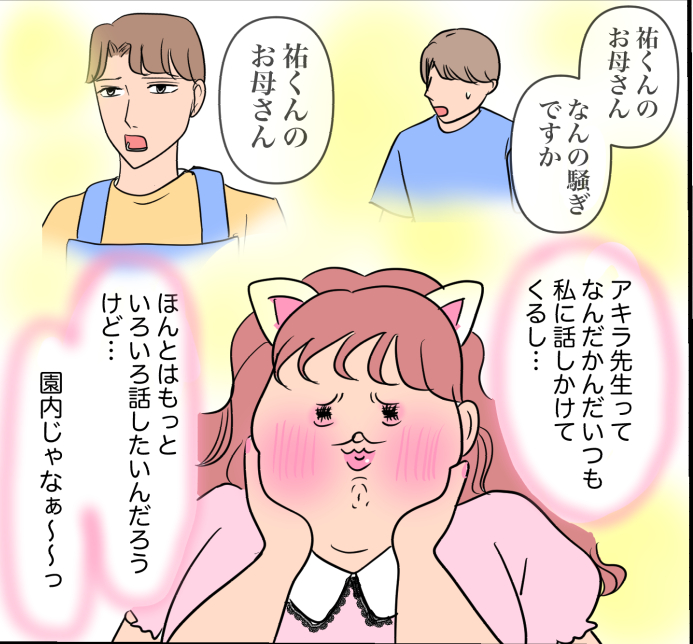 <広告> イケメン先生と既婚の副担任が密会?思い込み強めな保護者のとんでもない勘違い【妖精婚活ママ・ヨシミ #10】by ちゅん ‹ 前の話 一覧 <広告> ちゅん ‹12› 2026/01/12 ヨシミに火がついた…!! そして既婚者のはずの清水先生とアキラ先生の関係は…?? 続きます! <広告> ‹12› 【妖精婚活ママ・ヨシミ】 ▶ 他の話も読む ★フォローしてちゅんさんの最新記事をチェック! ‹ 前の話 一覧 本記事は個人的体験談などに基づいて作成されており、脚色なども加えられている場合もあり、必ずしも各読者の状況にあてはまるとは限りません。この記事の情報を用いて行動される場合、ご自身の責任と判断により対応いただけますようお願い致します。尚、記事に不適切な内容が含まれている場合はこちらからご連絡ください。 -------------------------------- <広告> 作者:ちゅん > 作者ページへ > Instagramを見る ちゅんさんの他のシリーズを読む 妖精婚活ママ・ヨシミ 自称・「いい男」と結婚しました 私の子育て、教えてあげる - トラブル, ママ ちゅん, 妖精婚活ママ・ヨシミ <広告> 関連記事 関連記事: なぜここに…? 連絡先を交換した“ママ友の夫”に感じた違和感【我が家に依存する迷惑親子 #38】by みつけまま 関連記事: 生理が来ない、体調もおかしい…いくら探しても、ほしい検索結果は出てこない【16歳、命と向き合うとき #7】by ふくふく 関連記事: 「まさか、この人も夫と同じ…?」元同僚の思わぬ告白。誘われた妻の返答は【宗教2世と結婚しました #86】 by ぷっぷ 関連記事: 「あの子に盗られちゃうかもよ」義母がニヤリ…その女って、あの時の?【夫婦ふたりじゃダメですか? #21】 by 尾持トモ 関連記事: 彼から誘った記念日ディナー。しかし会計直前に彼が言い出したことは…【彼氏がクズ男だと8年付き合って気付いた件③】 by eriつぃん 関連記事: ついに暴かれた又原さんの悪事…動かぬ証拠を突きつけられた又原さんは…【又原さんはマタハラが生きがい!?㉝】 by 白目みさえ 関連記事: 家事代行を始めた母の初仕事は育児中の女性宅。そこで母が言われた思いがけない言葉【ワガママな妹が産後に帰って来たら大変だった話⑱】 by みいの 関連記事: 子連れ外出が怖くなり受診した心療内科。診察後に先生が言ったことは…【我が子と外出するのが怖い④~最終話~】 by すじえ 関連記事: 思いがけない言葉に涙!骨折し食事もトイレも1人で出来なくなった3歳娘。幼稚園の対応を尋ねると…【娘が骨折した話④】 by みほ