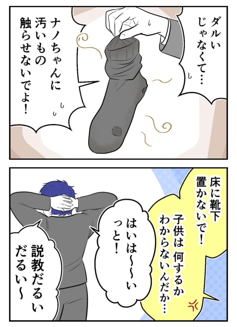 その足元で、ハイハイ中の娘が黒い靴下を掴んだ瞬間、背筋が凍る。