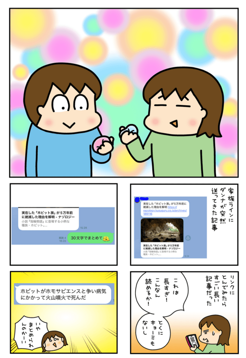 <広告> 家族LINEに長文リンクを投下する夫。要約させた「30文字」があまりにも雑すぎた【うちはおっぺけ~3姉妹といっしょ170話-1】by 松本ぷりっつ ‹ 前の話 一覧 <広告> 松本ぷりっつ 2026/01/14 松本ぷりっつ先生の「うちはおっぺけ~3姉妹といっしょ」絶賛連載中です♪ <広告> ★「うちはおっぺけ~3姉妹といっしょ」最新刊絶賛発売中! ★youtubeも見てね! ⇒「うちはおっぺけ~3姉妹といっしょ」をもっと読む 【うちはおっぺけ~3姉妹といっしょ】 ▶ 他の話も読む ★フォローして松本ぷりっつさんの最新記事をチェック! ‹ 前の話 一覧 本記事は個人的体験談などに基づいて作成されており、脚色なども加えられている場合もあり、必ずしも各読者の状況にあてはまるとは限りません。この記事の情報を用いて行動される場合、ご自身の責任と判断により対応いただけますようお願い致します。尚、記事に不適切な内容が含まれている場合はこちらからご連絡ください。 -------------------------------- <広告> 作者:松本ぷりっつ > 作者ページへ > Instagramを見る 松本ぷりっつさんの他のシリーズを読む 松本ぷりっつのダンナ50歳、楽しく健康イケオジ部! 子育てバッチコイ! - 姉妹, 子育て うちはおっぺけ~3姉妹といっしょ, ほのぼの, 笑い <広告> 関連記事 関連記事: イジメ加害者が一転、被害者に!?掌を返した同級生に言ったことは…【いじめっ子JCの『こんなはずじゃなかった!』第12話】by 佐伯梅 関連記事: 娘の友達のことで相談すると…先生が口にした“気になる一言”【初めての授業参観での衝撃事件 #8】 by Ai 関連記事: それ、娘の前で言う必要あった? 夫が放った“ある言葉”に妻は…【“育児の敵”はそばに居る #21】 by しろみ 関連記事: 夫の保育園お迎え=手抜き扱い?いいお母さんになるって誓ったはずなのに…【そのアドバイス誰のためですか?#5】by りんりん 関連記事: 復縁は介護要員の為?モラ夫のモラ発言が止まらない【DNAハラスメント夫の末路⑭】 by キリギリスRIN 関連記事: 母の悲鳴がして外を見ると…犬と2歳娘と母の驚き光景「子育てバッチコイ!⑱」by 松本ぷりっつ 関連記事: 噂好きな先輩が教えてくれた不倫にまつわる意外な話「育休中に夫が不倫してました160」by ももえ 関連記事: 飲食店で衝撃のG登場!料理を交換してほしいと伝えると…まさかの展開!【お食い初めで行った飲食店で祝膳からゴ○ブリ⁉︎〜みなさんならどうしますか?〜③】 by ねぼすけ 関連記事: 他人の礼儀に厳しい子供会の会長!自分が迷惑をかけた時には…?【非常識な人 第6話】by こっとん