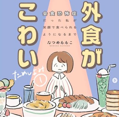 彼女の著書である「外食がこわい」を紹介する投稿シリーズでは、なつめさんが実際に「会食恐怖症」で苦しんだ経験を紹介しています。「ある日突然食べられなくなった」というなつめさんの外食や会食への不安や葛藤をリアルに描いており、同じような境遇の方たちの励みとなる内容です。