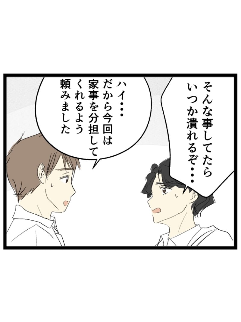 「嫁を甘やかしすぎだって!」先輩の忠告に、家事も育児も一人で担う夫が予想外の返答【未熟な夫婦の不協和音 #30】 by ぴん