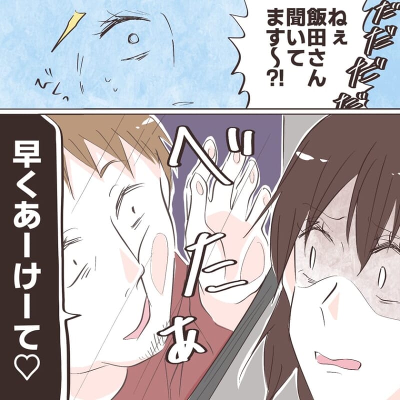 次の瞬間 ――ドアの方へ手を伸ばしてきた。