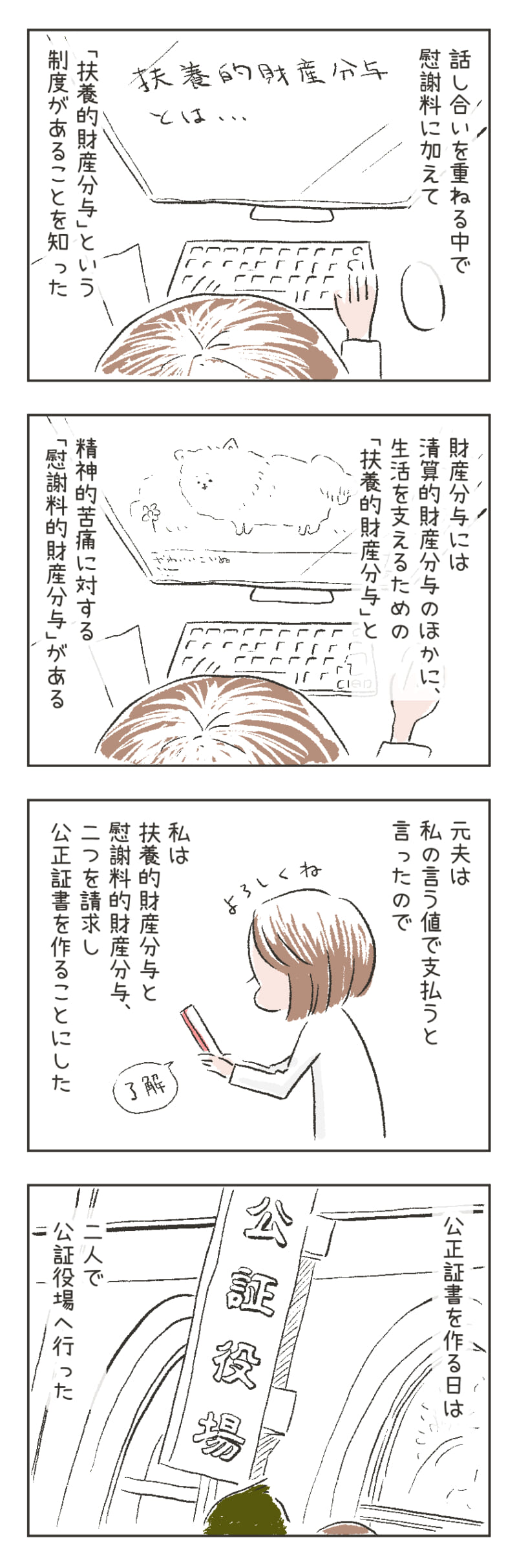 慰謝料の話は、大きな混乱なく進めることができた。