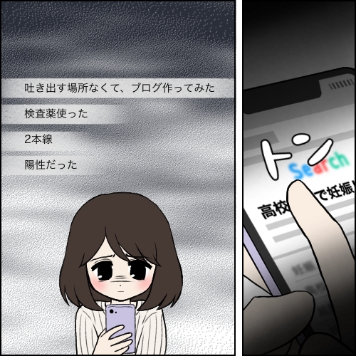<広告> 『高1で妊娠した』同じ境遇の高校生の衝撃的な言葉 ――この人はこの後どうしたの?【16歳、命と向き合うとき #17】by ふくふく ‹ 前の話 一覧 <広告> ふくふく ‹12› 2026/02/09 こんにちは!ふくふくです! Instagramとブログにて、体験談漫画を投稿している2児の母です。 ↓前回のお話はこちら 【16歳、命と向き合うとき #16】 何も変わりたくない、 日常を壊したくないいちかにとって、最悪の展開となった遊園地デート。 泣きながら検索した中で見つけた 『高1で妊娠した』 というタイトルのサイトに自分を重ねる… 《※実話に基づき構成されていますが、プライバシー保護および読み物としての面白さを優先するため、内容には脚色・改変を加えております。 登場する人物・団体・名称は全て架空のものであり、実在のものとは一切関係ありません。 あくまで半フィクション作品としてお楽しみください。》 <広告> ‹12› 【16歳、命と向き合うとき】 ▶ 他の話も読む ★フォローしてふくふくさんの最新記事をチェック! ‹ 前の話 一覧 本記事は個人的体験談などに基づいて作成されており、脚色なども加えられている場合もあり、必ずしも各読者の状況にあてはまるとは限りません。この記事の情報を用いて行動される場合、ご自身の責任と判断により対応いただけますようお願い致します。尚、記事に不適切な内容が含まれている場合はこちらからご連絡ください。 -------------------------------- <広告> 作者:ふくふく > 作者ページへ > Instagramを見る ふくふくさんの他のシリーズを読む なんでお金を盗んだらいけないの? 療育にいた!とんでもママ 夫にオンラインゲームをやめさせた話 - 女の子, 高校生 16歳、命と向き合うとき, ふくふく <広告> 関連記事 関連記事: 「最近おかしくない?」スマホを見てニヤニヤ…ママ友が気づいた夫の変化【我が家に依存する迷惑親子 #41】by みつけまま 関連記事: “加害者”と言われた息子…本人が語った内容に、母は言葉を失った【息子が加害者になりました 第23話】 by ゆる子 関連記事: 「だってしょうがないじゃん」再婚が決まったとたん小1の息子だけ置いてきた姉の理由とは【大迷惑な姉と縁を切った話 #14】by みとみい 関連記事: 我が家のいびつな平和が壊れた夜 第2話:継父による異常行動のはじまり③【母の再婚相手を殺したかった 性的虐待を受けた10年間の記録】 by 魚田コットン 関連記事: 勝手にライバル視?!他のクラスまで行って堂々と言い放った言葉は…【とにかく表彰されたいクラスメイト②】 by あやかず 関連記事: 2歳児のおままごとは意外な展開に!食べる真似をした娘がとった行動は?! by しき 関連記事: 思いがけない娘の姿にびっくり!エレクトーン発表会の演奏は…【娘とエレクトーン発表会に参加しました④】 by さとまる 関連記事: 娘のエレクトーンの発表会。いざ弾き始めると娘の意外な姿を見ることに…【娘とエレクトーン発表会に参加しました③】 by さとまる