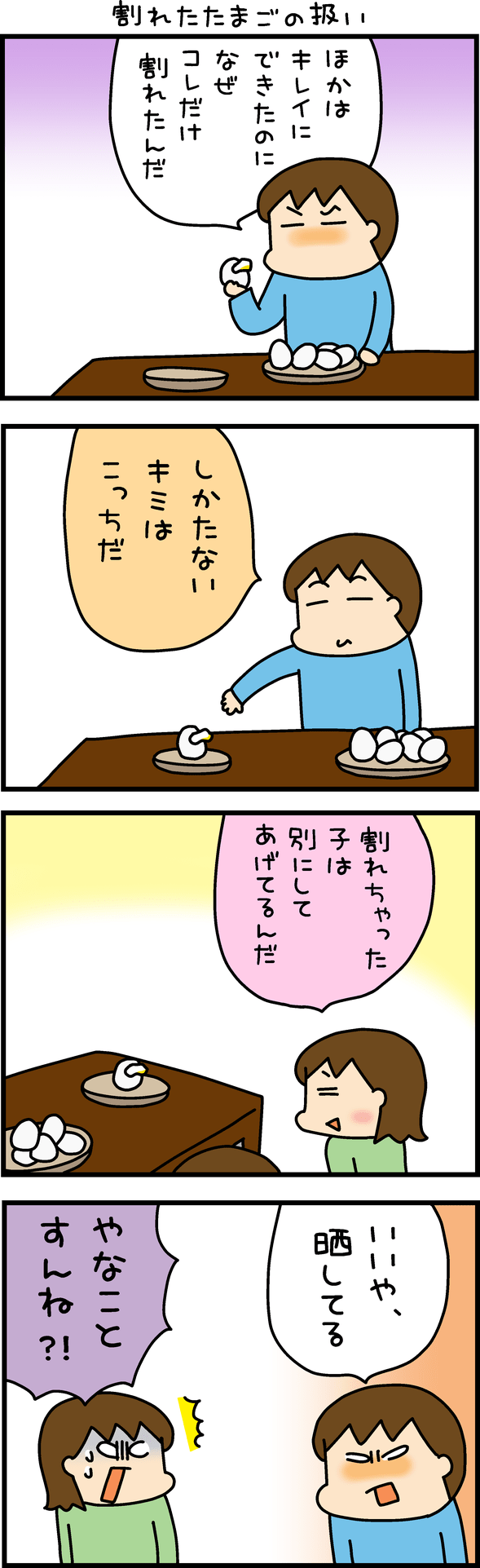 <広告> 完璧主義の“ゆで卵職人”夫。割れた1個を皿にポイ…その一言が信じられない【うちはおっぺけ~3姉妹といっしょ171話-4】by 松本ぷりっつ ‹ 前の話 一覧 <広告> 松本ぷりっつ 2026/02/22 松本ぷりっつ先生の「うちはおっぺけ~3姉妹といっしょ」絶賛連載中です♪ <広告> ★「うちはおっぺけ~3姉妹といっしょ」最新刊絶賛発売中! ★youtubeも見てね! ⇒「うちはおっぺけ~3姉妹といっしょ」をもっと読む 【うちはおっぺけ~3姉妹といっしょ】 ▶ 他の話も読む ★フォローして松本ぷりっつさんの最新記事をチェック! ‹ 前の話 一覧 本記事は個人的体験談などに基づいて作成されており、脚色なども加えられている場合もあり、必ずしも各読者の状況にあてはまるとは限りません。この記事の情報を用いて行動される場合、ご自身の責任と判断により対応いただけますようお願い致します。尚、記事に不適切な内容が含まれている場合はこちらからご連絡ください。 -------------------------------- <広告> 作者:松本ぷりっつ > 作者ページへ > Instagramを見る 松本ぷりっつさんの他のシリーズを読む 松本ぷりっつのダンナ50歳、楽しく健康イケオジ部! 子育てバッチコイ! - ママ, 姉妹, 旦那 うちはおっぺけ~3姉妹といっしょ, 笑い <広告> 関連記事 関連記事: 「孫が人生のゴールよ!」暴走する義母に、息子が突きつけた一言【夫婦ふたりじゃダメですか? #29】 by 尾持トモ 関連記事: 高校1年で妊娠した少女に浴びせられる誹謗中傷の嵐。その先に残ったものは…【16歳、命と向き合うとき #21】by ふくふく 関連記事: 「あなたが甘やかした結果でしょ?」娘と2人きり…2日で限界の夫に、妻がキレた【“育児の敵”はそばに居る #32】 by しろみ 関連記事: 「俺も同じです」馬鹿にされ落ち込む妻の前で、夫が笑顔で放ったひと言【女子会に夫を連れてくる友人 #11】 by 音坂ミミコ 関連記事: 夫の気楽な言葉に唖然。ノーリードの大型犬が庭に侵入!子どもを連れて家に逃げ込むが…【マナーの悪い飼い主の話③】 by こんかつみ 関連記事: 「遊びだった」と言い訳を続ける小1のいじめ加害児。クラス会は思いがけない方向に。【小学一年生の息子が同級生から虐めを受けた話⑬】 by みつけまま 関連記事: 娘を加害者扱いするママ友に証拠が見つかったと伝えると…【嘘つきママ友に嵌められました㉓】by ミント 関連記事: 「パパの嘘つき!」旦那がついた見え透いた嘘に怒り爆発!!【旦那の秘密の箱③】 by もっつん 関連記事: ママ友の元夫の企みは…!?操る男の考え方【ママ友は偽装シングルマザー⑰】by ポケット