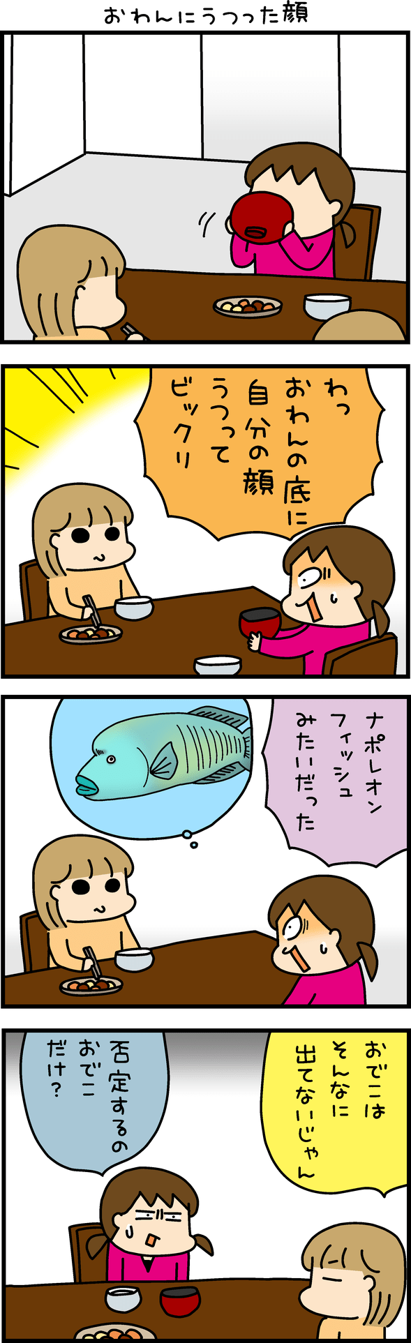 <広告> 「ナポレオンフィッシュみたい!」お椀の底に映った顔に青ざめる姉…妹のその慰め、違くない?【うちはおっぺけ~3姉妹といっしょ171話-7】by 松本ぷりっつ ‹ 前の話 一覧 <広告> 松本ぷりっつ 2026/03/02 松本ぷりっつ先生の「うちはおっぺけ~3姉妹といっしょ」絶賛連載中です♪ <広告> ★「うちはおっぺけ~3姉妹といっしょ」最新刊絶賛発売中! ★youtubeも見てね! ⇒「うちはおっぺけ~3姉妹といっしょ」をもっと読む 【うちはおっぺけ~3姉妹といっしょ】 ▶ 他の話も読む ★フォローして松本ぷりっつさんの最新記事をチェック! ‹ 前の話 一覧 本記事は個人的体験談などに基づいて作成されており、脚色なども加えられている場合もあり、必ずしも各読者の状況にあてはまるとは限りません。この記事の情報を用いて行動される場合、ご自身の責任と判断により対応いただけますようお願い致します。尚、記事に不適切な内容が含まれている場合はこちらからご連絡ください。 -------------------------------- <広告> 作者:松本ぷりっつ > 作者ページへ > Instagramを見る 松本ぷりっつさんの他のシリーズを読む 松本ぷりっつのダンナ50歳、楽しく健康イケオジ部! 子育てバッチコイ! - 姉妹, 子育て うちはおっぺけ~3姉妹といっしょ, 笑い <広告> 関連記事 関連記事: 「謝罪してください」妻を見下され怒る夫…始まった“夫婦の茶番”に言い放ったひと言【女子会に夫を連れてくる友人 #12】 by 音坂ミミコ 関連記事: 元同僚の告白に戸惑う妻「夫も同じ気持ち?」…夫の行動、その意味は?【宗教2世と結婚しました #93】 by ぷっぷ 関連記事: DMを送り続けてくれた相手に打ち明けた不安。そこへ投げかけられる、核心に迫った言葉は…【16歳、命と向き合うとき #23】by ふくふく 関連記事: 見過ごせなかった「授乳室の使い方」…施設スタッフに伝えた結果【授乳室で非常識ママに遭遇した話 #4】 by まめごママ 関連記事: 4人の子どもと孫に囲まれるアラフォーママ 大人気インスタグラマー・RINRINさんが気になる! 関連記事: 産後は「義母と育児」をする私に医師が慌てて聞いたことは…【双子育児と義母さんと②】 by ツマ子 関連記事: 助産師さんにあっさり拒否された願いごと【高位破水からの出産②】 by ぽてと 関連記事: 小1の息子がユーチューブで見るものは…芽生え始めた『性への好奇心』 by オニハハ。 関連記事: とにかく車に酔う子!いろいろな対処を試したのだけど…【二人目なのに 育てにくい?③】 by 林山キネマ
