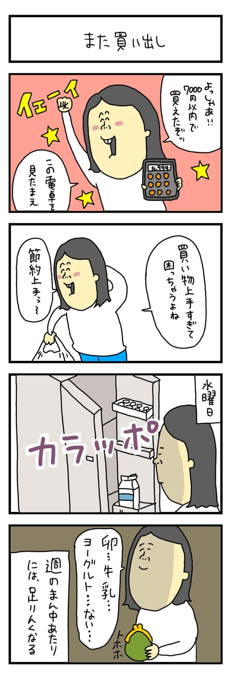 <広告> 1回あたり7000円!予算決めて週1まとめ買い。それでも週中に起きる“想定外”「今日も家計を守ります」第2話-5 by つっち ‹ 前の話 一覧 <広告> つっち ‹12› 2026/02/16 ★つっちさんの「今日も家計を守ります」絶賛連載中! <広告> ‹12› 【今日も家計を守ります】 ▶ 他の話も読む ★フォローしてつっちさんの最新記事をチェック! ‹ 前の話 一覧 本記事は個人的体験談などに基づいて作成されており、脚色なども加えられている場合もあり、必ずしも各読者の状況にあてはまるとは限りません。この記事の情報を用いて行動される場合、ご自身の責任と判断により対応いただけますようお願い致します。尚、記事に不適切な内容が含まれている場合はこちらからご連絡ください。 -------------------------------- <広告> 作者:つっち > 作者ページへ > Instagramを見る つっちさんの他のシリーズを読む 今日も家計を守ります - お買い物, ママ, 子育て つっち, 今日も家計を守ります, 家計 <広告> 関連記事 関連記事: 「送迎の代わりに家事をする」と約束した時短勤務の妻。お迎え時間に夫が焦るなか妻は…【未熟な夫婦の不協和音 #31】 by ぴん 関連記事: つわりを隠したままの16歳に、母の正論が突き刺さる【16歳、命と向き合うとき #19】by ふくふく 関連記事: 「俺、気になんないよ」濡らしただけの風呂掃除、おむつはテーブル放置の夫に妻がひと言【私の義母が神すぎる! #5】 by 尾持トモ 関連記事: 「あんた最近おかしくない?」スマホに夢中な夫に違和感。問い詰めた妻に夫が…【我が家に依存する迷惑親子 #42】by みつけまま 関連記事: グレーな気持ちになる理由。息子が産まれてからずっと苦しんでいたこと【泣いて笑って発達障害~療育を知らない世代の私たち~⑬】 by ワンタケ 関連記事: はっきりと伝わる2歳の娘からの『拒絶』に私は…【抱えきれなかった気持ち③】 by ミロチ 関連記事: これって夜泣き?でもなにかが違う…【長男の夜驚症①】 by CHIHIRO 関連記事: 一向に消えない乳児湿疹。ネット検索をした結果…【生後1ヶ月の娘に出来たもの②】 by のん 関連記事: わりと優しめに夫からの諭されたこと by うさみかあさん