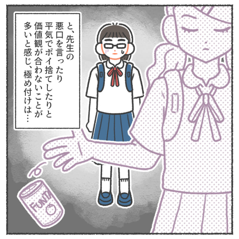 <広告> 「普通に過ごしたいだけなのに」中学校でできた新しい友達の最悪な発言とは【陰キャオタクのトラウマ恋愛話 #1】by アゲちゃん 一覧 <広告> アゲちゃん ‹12› 2026/02/01 <広告> 放課後も地獄 \イッキ読みできます/ 👉作品はこちら:https://amzn.to/3Z60hpe ‹12› 【陰キャオタクのトラウマ恋愛話】 ▶ 他の話も読む ★フォローしてアゲちゃんさんの最新記事をチェック! 一覧 本記事は個人的体験談などに基づいて作成されており、脚色なども加えられている場合もあり、必ずしも各読者の状況にあてはまるとは限りません。この記事の情報を用いて行動される場合、ご自身の責任と判断により対応いただけますようお願い致します。尚、記事に不適切な内容が含まれている場合はこちらからご連絡ください。 -------------------------------- <広告> 作者:アゲちゃん > 作者ページへ > Instagramを見る アゲちゃんさんの他のシリーズを読む 陰キャオタクのトラウマ恋愛話 放課後も地獄 - 中学生, 女の子 アゲちゃん, 陰キャオタクのトラウマ恋愛話 <広告> 関連記事 関連記事: 絶体絶命!?いじめっ子のせいで見知らぬ男子高校生が校門に…【いじめっ子JCの『こんなはずじゃなかった!』第15話】by 佐伯梅 関連記事: 『病院行った方が…』妊娠を隠したい16歳の彼女に、彼氏の言葉が刺さる【16歳、命と向き合うとき #15】by ふくふく 関連記事: お前がいなくてもやってける…?!何もしない夫と娘を残し家を出た妻。夫の反応は…【“育児の敵”はそばに居る #27】 by しろみ 関連記事: 「あの嫁とはもう離婚!」息子の再婚を目論む義母が“嫁の職場”に押しかけた【夫婦ふたりじゃダメですか? #25】 by 尾持トモ 関連記事: マウントキラーの友人が曝け出した本性【私の方が上だよね?⑥】 by まぎ. 関連記事: 眼科でもらった絵カードを使い、1歳娘の視力検査の練習をしようとしたら…?【この子の目って斜視ですか?㉗】 by ぴなぱ 関連記事: 次回の受診に向けて、1歳の娘が行う視力検査の練習方法とは?【この子の目って斜視ですか?㉖】 by ぴなぱ 関連記事: 「この子おかしいでしょ」ボーイッシュな娘の装いに異常な反応を示す、かわいいママ友。【かわいい私だけを愛してる】第一話。by コハダさんさん 関連記事: 離婚した母は仕事にもいかずギャンブル三昧。放置された私の日常は…【虐待母からやっと逃げられた①】 by ゆーとぴあ