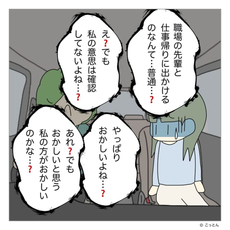 「大袈裟な!」頭の中で響く声…突然、私の車に乗り込んだ先輩を疑う私は“おかしい”の?【なんであんな男と結婚したの? 第87話】by こっとん
