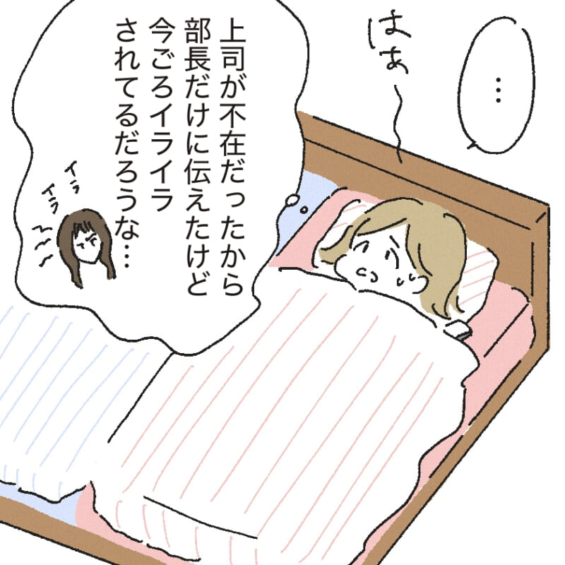 不安でいっぱいの中、家で寝ていても気になるのは上司の反応…。
