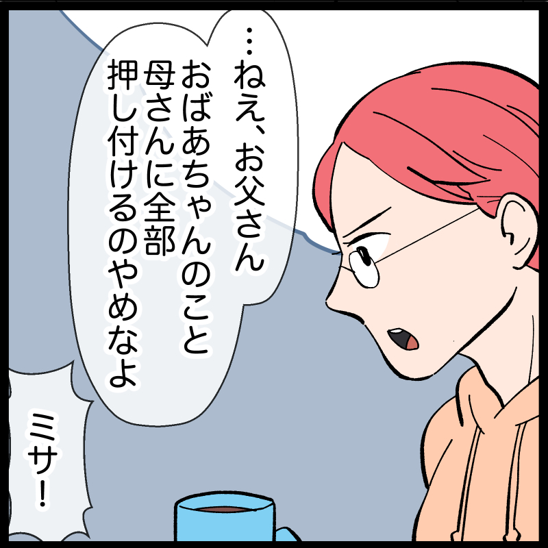<広告> 「おばあちゃんはお父さんの親でしょ」介護を丸投げする父に詰め寄る娘、返ってきた言葉は【最高の親孝行⁉︎ #25】 by 新垣ライコ ‹ 前の話 一覧 <広告> 新垣ライコ ‹12› 2026/02/18 自分の力で再び生活をするため努力することを決めタマコ その姿を見守りながらカスミは暖かい気持ちを感じ、自らも力をもらいます しかしそんなタマコの退院後の生活が決まらないまま週末が来てしまいます… <広告> ‹12› 【最高の親孝行⁉︎】 ▶ 他の話も読む ★フォローして新垣ライコさんの最新記事をチェック! ‹ 前の話 一覧 本記事は個人的体験談などに基づいて作成されており、脚色なども加えられている場合もあり、必ずしも各読者の状況にあてはまるとは限りません。この記事の情報を用いて行動される場合、ご自身の責任と判断により対応いただけますようお願い致します。尚、記事に不適切な内容が含まれている場合はこちらからご連絡ください。 -------------------------------- <広告> 作者:新垣ライコ > 作者ページへ > Instagramを見る 新垣ライコさんの他のシリーズを読む 最高の親孝行⁉︎ 私の赤ちゃん オカン系義母の干渉が止まらない!!! - じいじばあば, トラブル, 介護, 旦那 新垣ライコ, 最高の親孝行⁉︎ <広告> 関連記事 関連記事: 「できる仕事は自分でやって」妊娠中に私を追い詰めた存在は…【人間関係で無理した妊娠 #1】 by なつめももこ 関連記事: 鳴り響く防犯ブザー。そこに登場したのはまさかの人物で…【いじめっ子JCの『こんなはずじゃなかった!』第18話】by 佐伯梅 関連記事: 「お前は一人っ子だろ。つまり…」夫の提案で突如始まった妊活。頑張る妻に残酷なひと言【優モラ夫の化けの皮を剥がしてやった話 #4】 by ままぽぽ 関連記事: 「俺、気になんないよ」濡らしただけの風呂掃除、おむつはテーブル放置の夫に妻がひと言【私の義母が神すぎる! #5】 by 尾持トモ 関連記事: 「やっぱり…偶然じゃない」 噂から始まっていた“私たち一家”への不気味な連携行動【ここには誰もいないはずだった#18】 by あん子 関連記事: 自然出産は“無課金“の勝ち組!?「一千万円得してる!」【独身と既婚どっちが幸せ?第142話】by ゆりゆ 関連記事: あれ、ちがう…?小1の頃に強烈だったあの子、小3で見た意外な姿【初めての授業参観での衝撃事件 #10】 by Ai 関連記事: 「お時間ありますか?」 疲れ切った私を呼び止めた“その人”の目的は…【“育児の敵”はそばに居る #22】 by しろみ 関連記事: 上司に気に入られている“要領のいい先輩”。仕事納めの日、後輩が知ってしまった事実とは【なんであんな男と結婚したの? 第68話】by こっとん