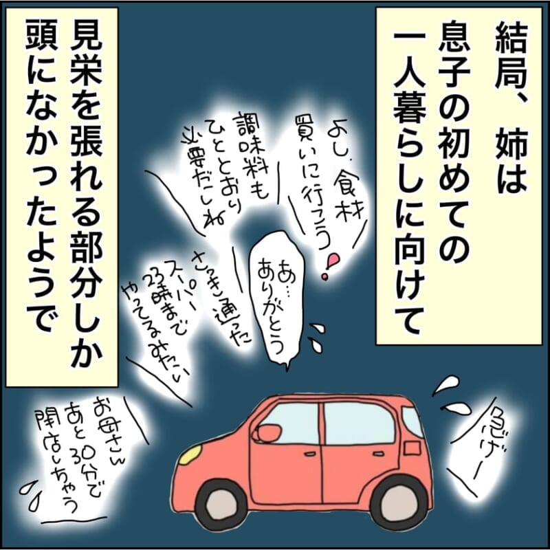 <広告> 噓でしょ!買ったのはこれ?!息子の初めての一人暮らしなのに…母の準備が想定外すぎた【大迷惑な姉と縁を切った話 #16】by みとみい ‹ 前の話 一覧 <広告> みとみい ‹12› 2026/02/20 <広告> ★「天国に行ってきた話」を電子書籍発売中! ‹12› 【大迷惑な姉と縁を切った話】 ▶ 他の話も読む ★フォローしてみとみいさんの最新記事をチェック! ‹ 前の話 一覧 本記事は個人的体験談などに基づいて作成されており、脚色なども加えられている場合もあり、必ずしも各読者の状況にあてはまるとは限りません。この記事の情報を用いて行動される場合、ご自身の責任と判断により対応いただけますようお願い致します。尚、記事に不適切な内容が含まれている場合はこちらからご連絡ください。 -------------------------------- <広告> 作者:みとみい > 作者ページへ > Instagramを見る みとみいさんの他のシリーズを読む 大迷惑な姉と縁を切った話 天国に行ってきた話 - みんなの漫画, トラブル, ママ, 子育て みとみい, 三叶実依, 体験談, 双子, 双子姉妹, 大迷惑な姉と縁を切った話, 毒姉, 毒母 <広告> 関連記事 関連記事: 浴室から妻の悲鳴…「偶然」か、それとも ――嫉妬した夫がした『報復』とは【妻が突然家を出て行きました #42】 by ずん 関連記事: 「俺も同じです」馬鹿にされ落ち込む妻の前で、夫が笑顔で放ったひと言【女子会に夫を連れてくる友人 #11】 by 音坂ミミコ 関連記事: 「これ、書いてくれるわね」義母が嫁に迫った“最後の選択”【夫婦ふたりじゃダメですか? #28】 by 尾持トモ 関連記事: 【親バカフィルター】写真では無効です。撮った我が子は、アレ…? 関連記事: 【オムツ卒業方法】娘があっさりトイトレ完了した理由はたったの一言! 関連記事: 両親が遊びに来た!9ヶ月の孫が可愛くて仕方ない父親の絶叫! by フナ 関連記事: 1歳健診の費用が浮く?!育児相談に行って初めて知ったお得情報! by ワンタケ 関連記事: パパがオムツ交換をするとなぜこうなる?!育児疲れのママはイライラ!! by オチョのうつつ
