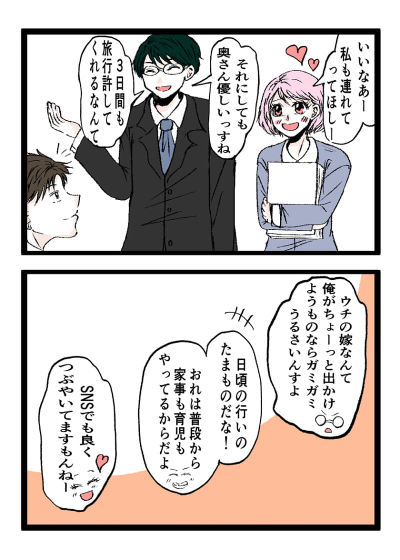 「俺は元気だから旅行に行く」発熱の妻子に置き去り宣言した夫…朝、目覚めたら『妻』?!【妻と身体が入れ替わった話ー俺ってイクメンだよね?ー #2】 by あおば