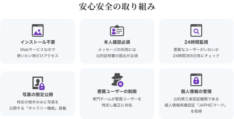 既婚者という同じ立場だからこそ生まれる共感を大切にし、異性・同性を問わず、安心してつながれるサービスを提供しています。