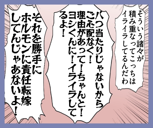 アヤメさんがイライラしている原因はホルモンバランスのせいと決めつけ、八つ当たりに耐えるのにも限界がある、と言うヨシくんに、アヤメさんはヨシくんの言動がズレていることがイライラの原因だと伝えます…