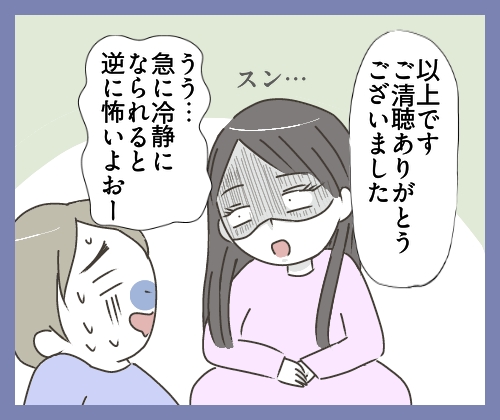<広告> つわりは運動したら治ると信じる夫…「んな訳ないから!」妻の怒り爆発【ズレてる夫とホルモン保健師 #9】 by nekoneko ‹ 前の話 一覧 <広告> nekoneko ‹12› 2026/03/08 次回に続きます… <広告> つきまとうクラスメイト \今なら無料でイッキ読み/ 作品はこちらから👉https://amzn.to/4t5lBsF ‹12› 【ズレてる夫とホルモン保健師】 ▶ 他の話も読む ★フォローしてnekonekoさんの最新記事をチェック! ‹ 前の話 一覧 作者:nekoneko > 作者ページへ > Instagramを見る nekonekoさんの他のシリーズを読む ズレてる夫とホルモン保健師 つきまとうクラスメイト~総集編~ 血はつながってるのに会話が成立しません ママ, 子育て, 旦那 nekoneko, ズレてる夫とホルモン保健師 <広告> 本記事は個人的体験談などに基づいて作成されており、脚色なども加えられている場合もあり、必ずしも各読者の状況にあてはまるとは限りません。この記事の情報を用いて行動される場合、ご自身の責任と判断により対応いただけますようお願い致します。 尚、記事に不適切な内容が含まれている場合はこちらからご連絡ください。 関連記事 関連記事: 「私の孫だもの!」息子に絶縁された義母。女性に頼られるうち、気づけば…【夫婦ふたりじゃダメですか? #32】 by 尾持トモ 関連記事: 「大げさなんだから」と帰されて…発熱5日目、泣き続ける赤ちゃんの様子がおかしい【子どもの熱、様子見でいいの? #3】 by 早乃あかり 関連記事: 「謝るから離婚だけは…」強気だった自称イクメン夫が崩れた瞬間【“育児の敵”はそばに居る #36】 by しろみ 関連記事: 5歳の連れ子が懐かない…悩む私に届いた最高の誕生日プレゼント「子育てバッチコイ!7話-2」by 松本ぷりっつ 関連記事: 「帰ってちょうだい!」唯一の友達に母親が罵声!遊びを禁止する理由とは?【親には言えない 第88話】by こっとん 関連記事: 嫁はモラハラ加害者!?義母の勘違いに夫が反論するも、まさかの展開に…「育休中に夫が不倫してました309」by ももえ 関連記事: 離婚直前の修羅場…義父の謝罪にモラハラ夫が放った“責任転嫁”の衝撃発言【妊娠したら夫が豹変しました㉙】by 尾持トモ 関連記事: 同級生から嫌われた!?みんな去っていくなか1人残った友達が…!?【親には言えない 第87話】by こっとん