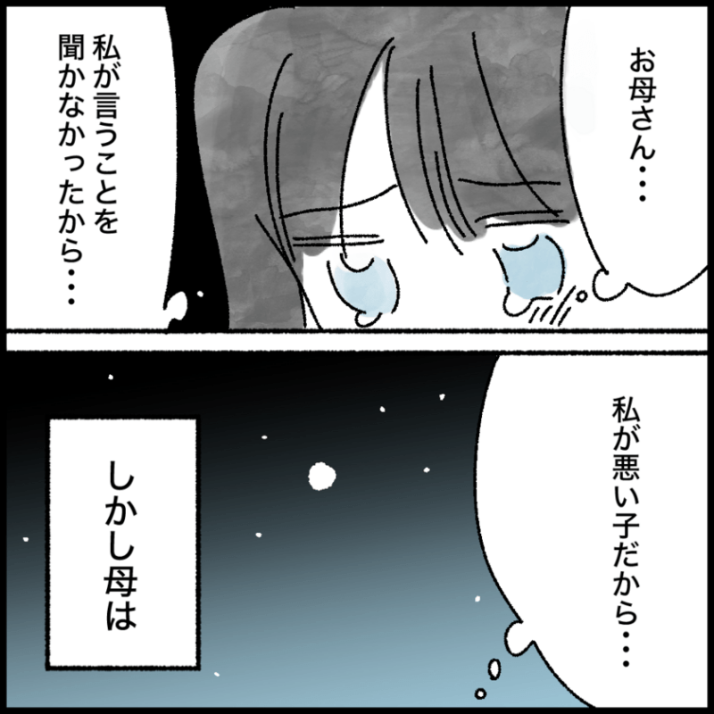 <広告> 「まだ残ってるけど…」母のひと言で凍りつく娘。そのまま腕を掴まれて…【いい子でいれば、大丈夫?#2】 by マコモ ‹ 前の話 一覧 <広告> マコモ ‹12› 2026/03/21 続きます。 <広告> ‹12› 【いい子でいれば、大丈夫?】 ▶ 他の話も読む ★フォローしてマコモさんの最新記事をチェック! ‹ 前の話 一覧 作者: マコモ > 作者ページ > SNS しくじり育児, 女の子, 子育て, 小学生 いい子でいれば、大丈夫?, マコモ <広告> 本記事は個人的体験談などに基づいて作成されており、脚色なども加えられている場合もあり、必ずしも各読者の状況にあてはまるとは限りません。この記事の情報を用いて行動される場合、ご自身の責任と判断により対応いただけますようお願い致します。 尚、記事に不適切な内容が含まれている場合はこちらからご連絡ください。 関連記事 関連記事: 「戸籍を抜いてくれないか?」夫の財産を搾取していた義父の提案に妻は…【義実家との金銭トラブル #7】 by Ai 関連記事: 土下座して改心した夫。再構築されたように見える我が家だが…妻の本音は【“育児の敵”はそばに居る #40】 by しろみ 関連記事: 「保育園連れてくの忘れてた!」園の電話に青ざめる夫…先生への返しがズレてる【妻と身体が入れ替わった話ー俺ってイクメンだよね?ー#6】 by あおば 関連記事: 遊び場へ行くと娘は必ず…11ヶ月の娘の不思議行動 by ミドリャフカ 関連記事: 「ぐっちゃんのいえ」第3話-ハーバリウム作り体験のちまちました作業で無心になる① by chiiko 関連記事: 反省の色なし!?謝罪納得いかず…【いじめ発覚!?そのとき親の対応は?⑥】 by 金星 関連記事: モヤモヤの火種に油を注いだ旦那の一言【入園後に起こった恐怖の家庭内感染④】by はなうさ 関連記事: 休眠口座残高0円ミッション「わくworkニコタン」28話-ニコタン、韓国へ行く!③ by 堀内三佳