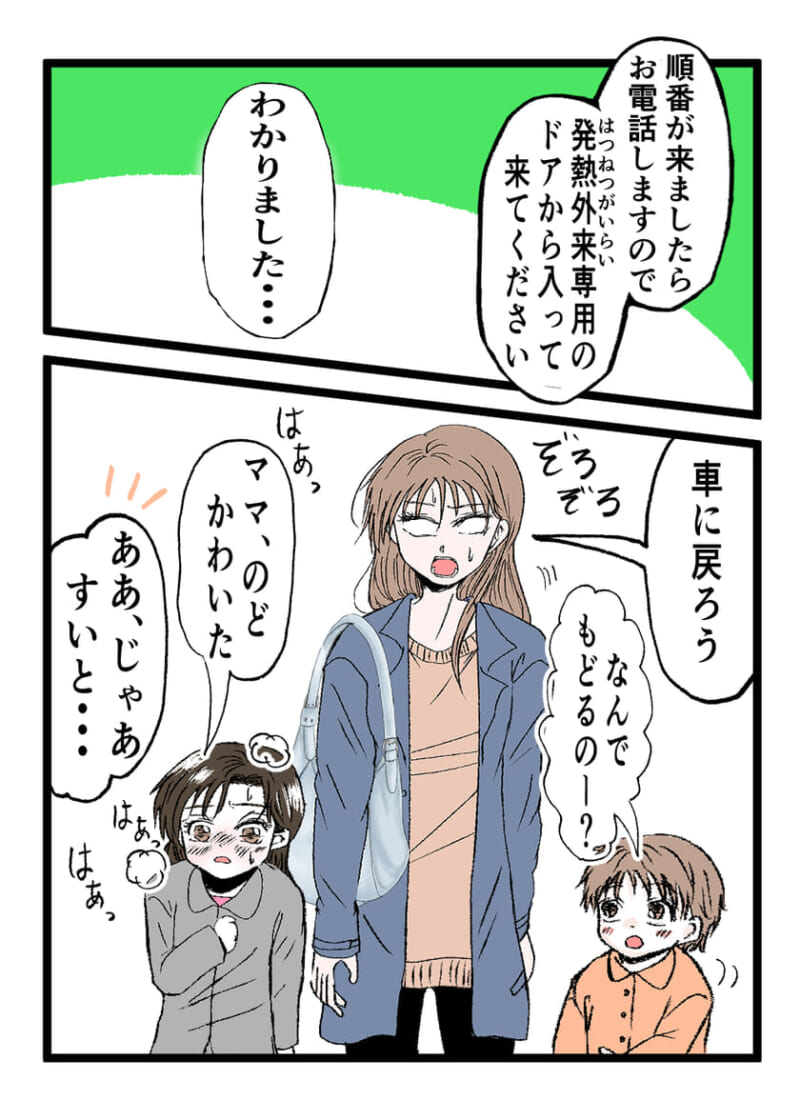 <広告> 「なんで車で待たなきゃいけないの?!」初ワンオペ夫、小児科の知らなかったルールに絶句【妻と身体が入れ替わった話ー俺ってイクメンだよね?ー#13】 by あおば ‹ 前の話 一覧 あおば ‹12› 2026/04/13 やっと順番が来たけれど・・・次回、またしても打ちのめされるマコト!? 読んでいただきありがとうございます! 次回の更新予定は 4月17日です。 また読んでもらえたら嬉しいです✨ <広告> ‹12› 【妻と身体が入れ替わった話】 ▶ 他の話も読む ★フォローしてあおばさんの最新記事をチェック! ‹ 前の話 一覧 作者: あおば > 作者ページ > SNS あおばさんの電子書籍 妻と身体が入れ替わった話 コロナ禍でのワーママ奮闘記!!! あおばさんの他のシリーズを読む 妻と身体が入れ替わった話 コロナ禍でのワーママ奮闘記!!! VSおばあちゃん助産師~ちょっと雑だよ助産師さん!! ママ, 子育て, 家事, 旦那 あおば, 妻と身体が入れ替わった話 <広告> 本記事は個人的体験談などに基づいて作成されており、脚色なども加えられている場合もあり、必ずしも各読者の状況にあてはまるとは限りません。この記事の情報を用いて行動される場合、ご自身の責任と判断により対応いただけますようお願い致します。 尚、記事に不適切な内容が含まれている場合はこちらからご連絡ください。 関連記事 関連記事: 「救急車は呼ばない」母が倒れたのに動かない父たち…理由を聞いた娘は唖然【実母がお風呂で倒れた話 #3】 by Ai 関連記事: 「私たちは迷惑親子…?」息子を信じていたのに揺らぐ母…私は母親失格?【息子が加害者になりました 第27話】 by ゆる子 関連記事: 「それじゃ、子供は成長しないよ」ハサミを放置する夫…“危ない”の基準が違いすぎる【私の義母が神すぎる! #11】 by 尾持トモ 関連記事: 「なんで自分だけいいと思ってる?」女子会に夫を連れてくる友人…泣いて悔しがる彼女に告げたひと言は【女子会に夫を連れてくる友人 #16】 by 音坂ミミコ 関連記事: お祭りの見回りでは驚きの光景が?!【私の役員生活⑰】 by あぽり 関連記事: 娘に言われた3文字の言葉「母ときどき鬼」第1話②by さやかわさやこ 関連記事: 保育園のクラスに不審者!?【末っ子ミーのおともだち生活(36)】 by ユウ 関連記事: 母乳量の計測がやめられない!【貧乳母の母乳育児②】 by ぺぷり 関連記事: ママ達がグループになり話している中、私は・・・【保育園でママ友を作らなかった結果②】 by Ai